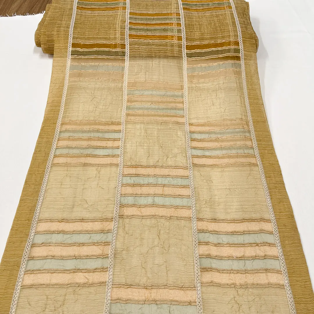 Stoffa per tende a vetro in organza con quadri e righe in contrasto
