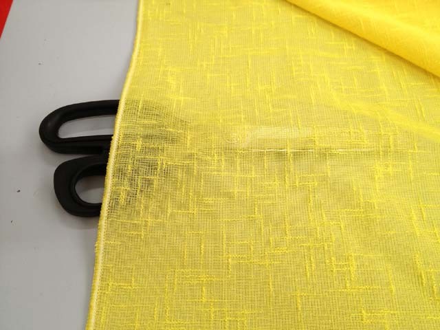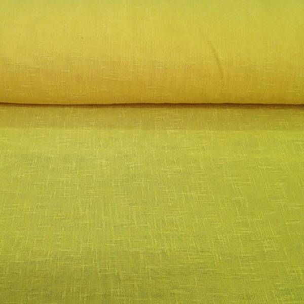 Tessuto per tendaggi boucle in poliestere. Colore giallo canarino. Solare e luminoso.