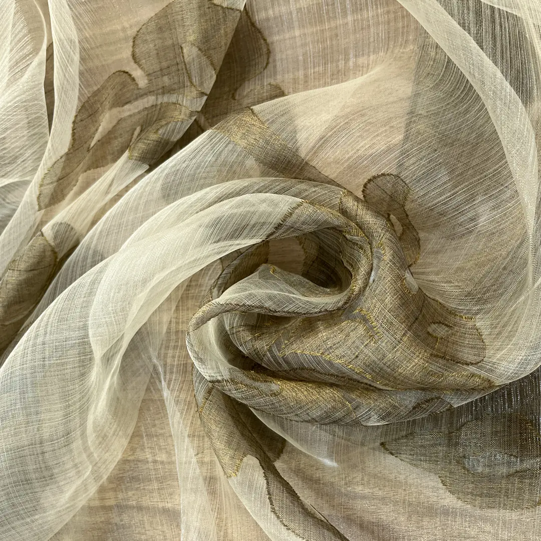 Organza Devoré Damascata per Tende: Elegante Bronzo su Sfondo Tortora Neutro