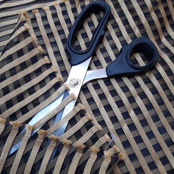 Tenda in organza a righe oro e nero