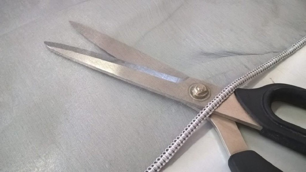 Tessuto per tendaggio in organza semitrasparente, orlato a piombo