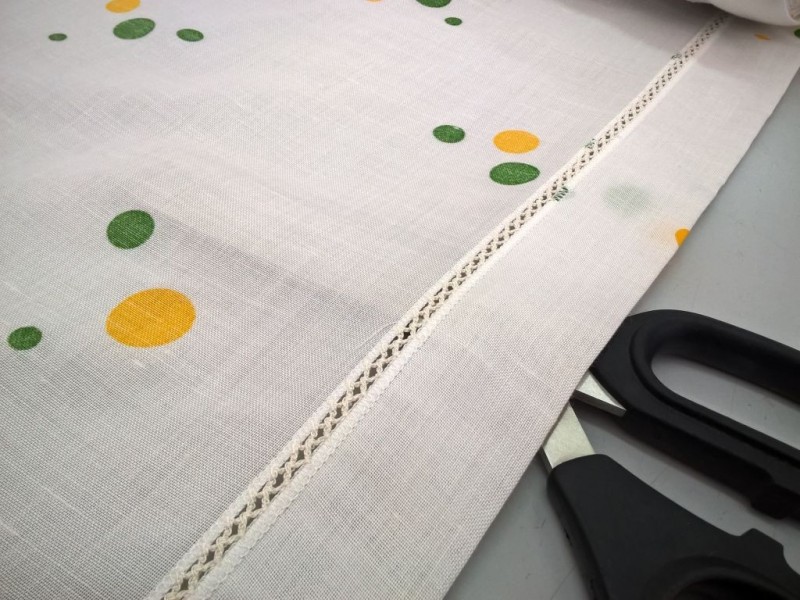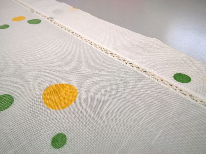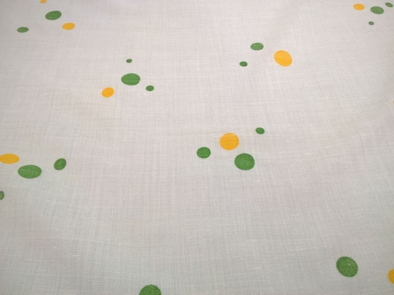 Tessuto per tende a vetro con cerchietti verdi e gialli