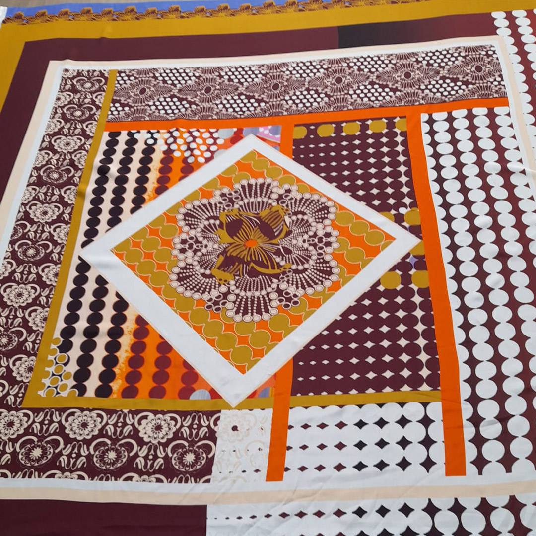 Raso di seta a pannello 140×140 con disegni astratti
