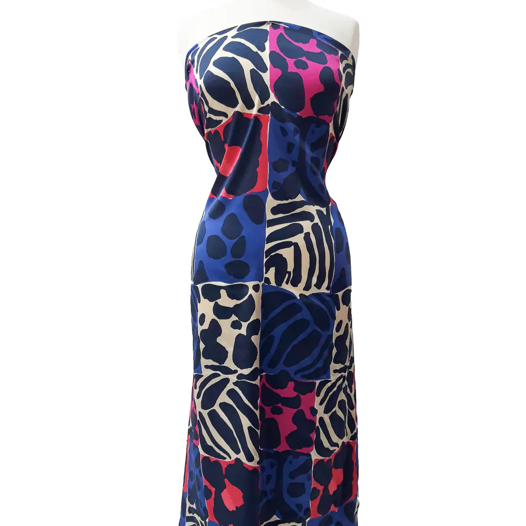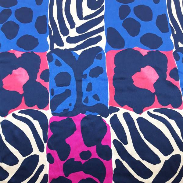 Questa stoffa combina l’eleganza e la morbidezza tipiche della seta con la praticità dell’elasticità. La fantasia animalier multicolore lo rende vivace e di grande impatto visivo, adatto per capi di abbigliamento o accessori di moda audaci e sofisticati, come abiti da sera, camicette, gonne aderenti, foulard.