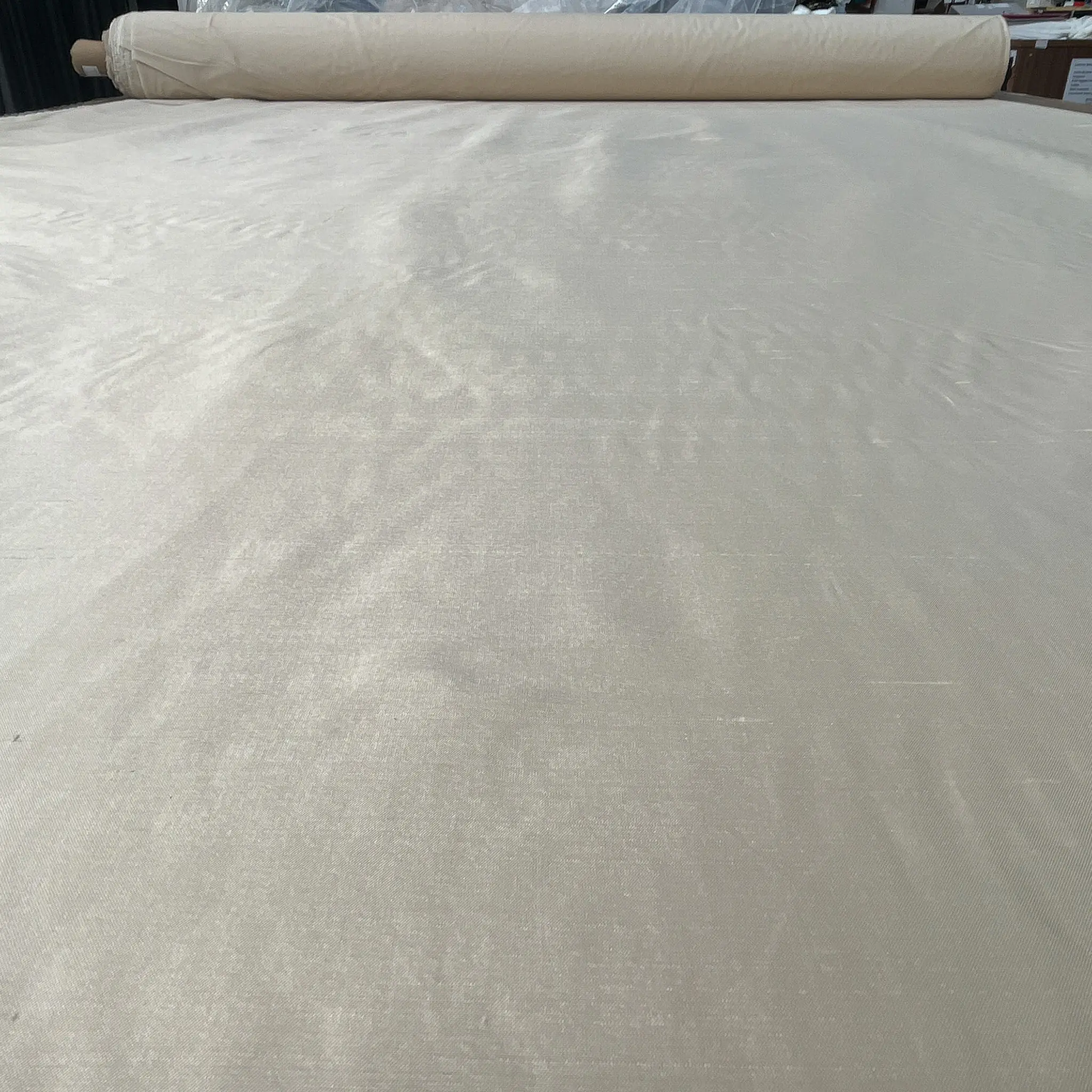 La mano asciutta e leggermente croccante conferisce corpo e consistenza, permettendo al tessuto di mantenere con eleganza volumi, pieghe e drappeggi stabili. La caduta è strutturata, non fluida come un raso, ma più compatta e architettonica — qualità che lo rende perfetto per tendaggi di alto livello.