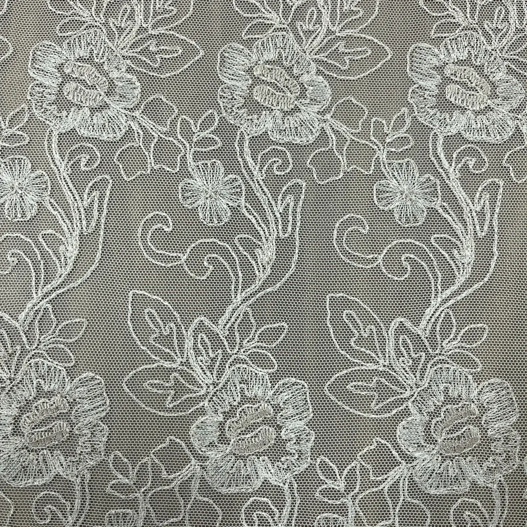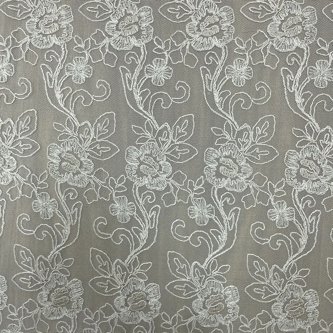 L’avorio dei fiori crea un contrasto raffinato con il fondo ecrù, conferendo alla stoffa un aspetto sofisticato e senza tempo.