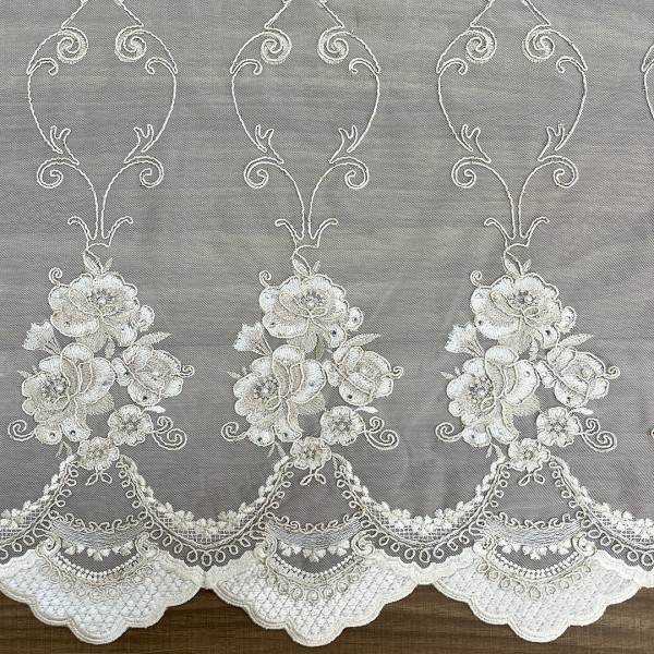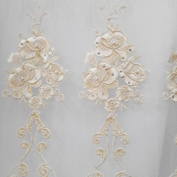 Tessuto per tende in tulle ricamato rose con perline e Swarovski Alt.300 cm