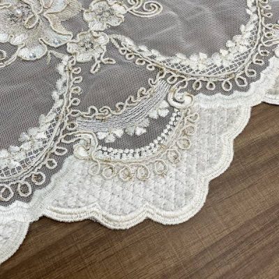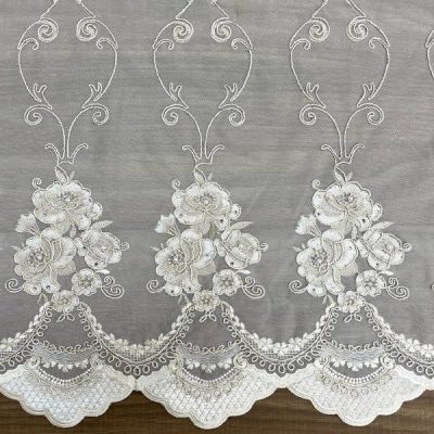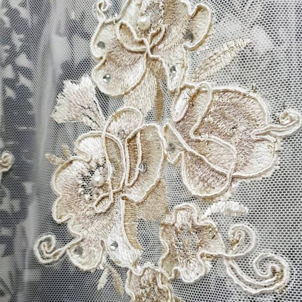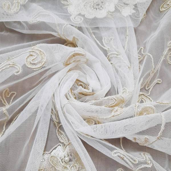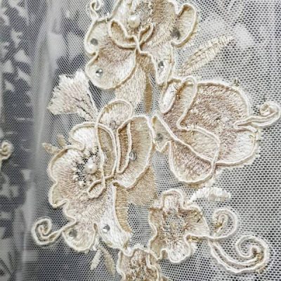 Le leggere sfumature in avorio donano profondità al tessuto e lo rendono estremamente versatile, adattandosi sia agli ambienti eleganti di una casa che alla realizzazione di abiti da cerimonia, dove questi ricami preziosi e floreali sono molto apprezzati per il loro fascino delicato e senza tempo.
