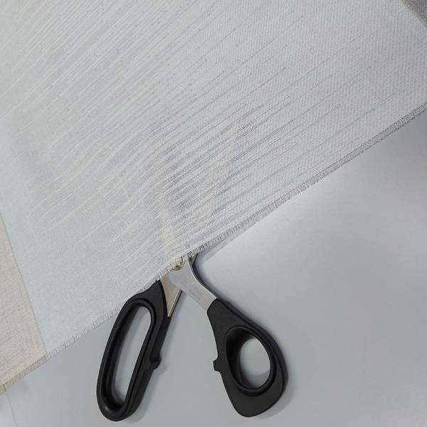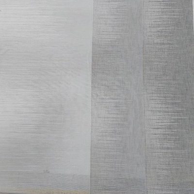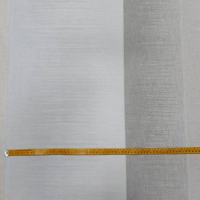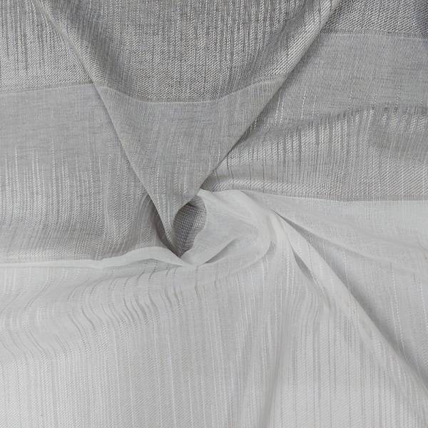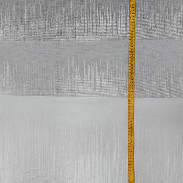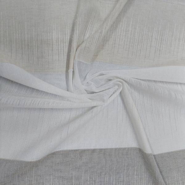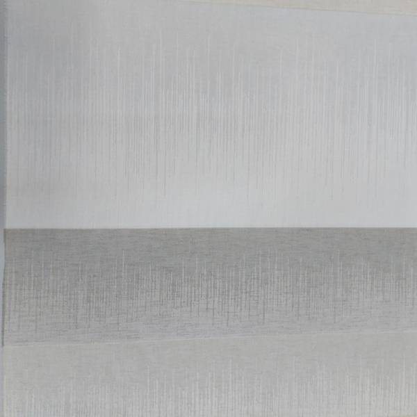 Tenda a righe con tonalità neutre caratterizzata da sfumature ricamate in verticale da rendere un effetto degradè del colore della riga.