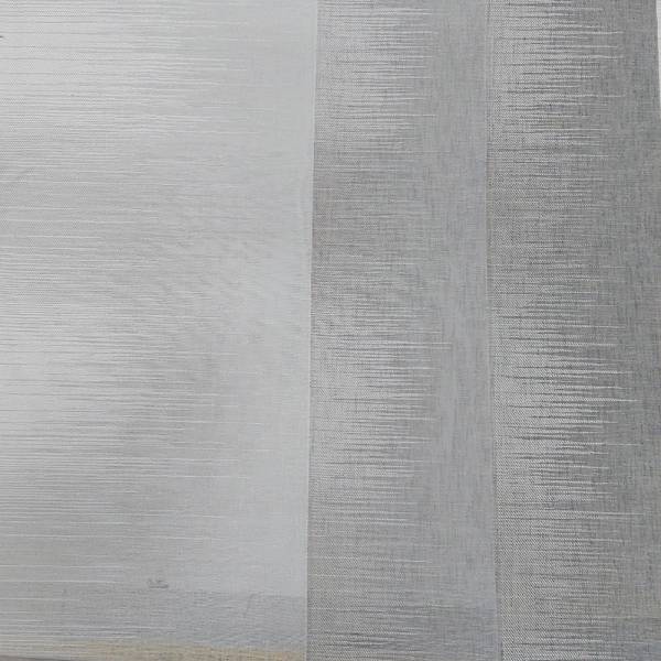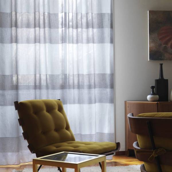 Tessuto per tendaggi del marchio Via Roma 60, a righe orizzontali dalle sfumature di colori neutri