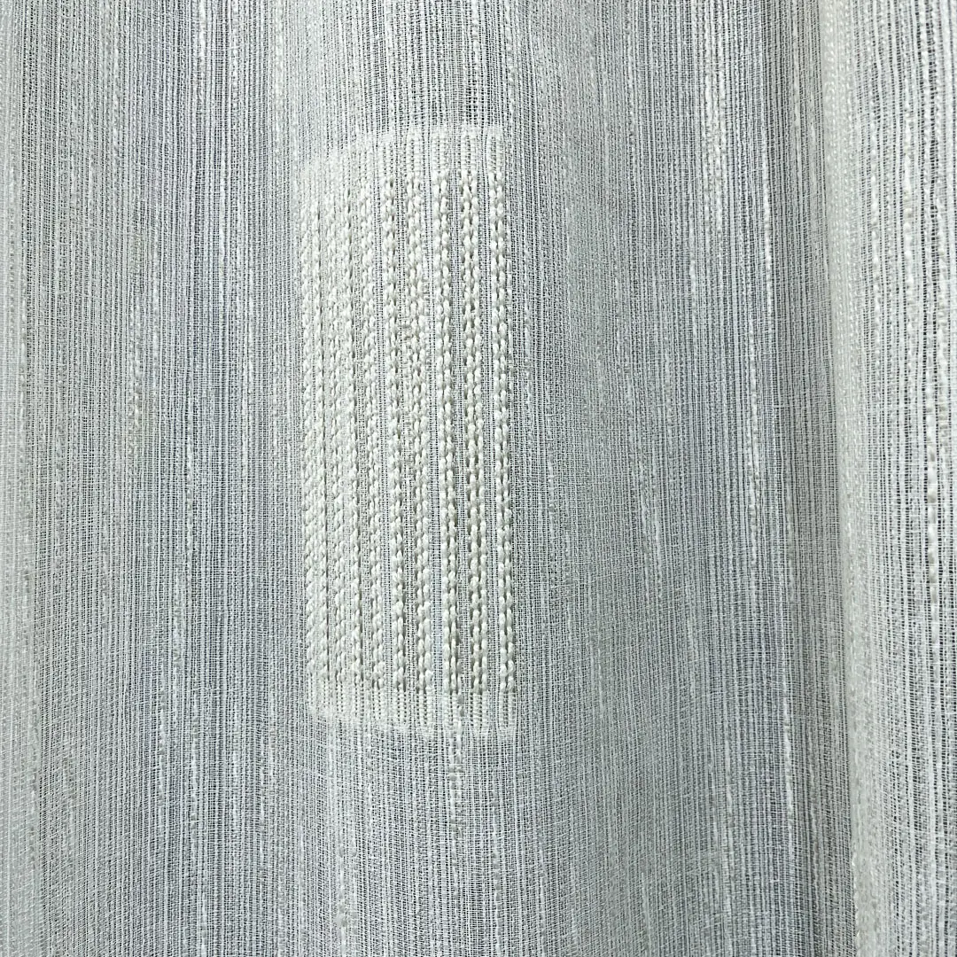 Questo tendaggio è realizzato con un filato fiammato che crea una superficie leggermente irregolare e cangiante, donando movimento e profondità al tessuto.