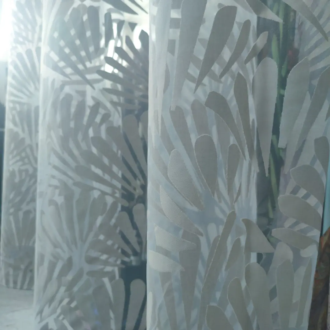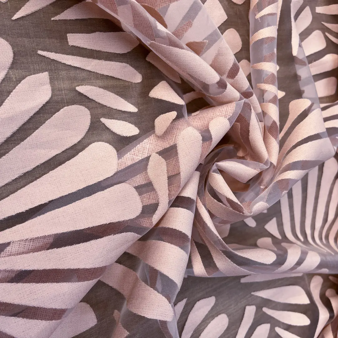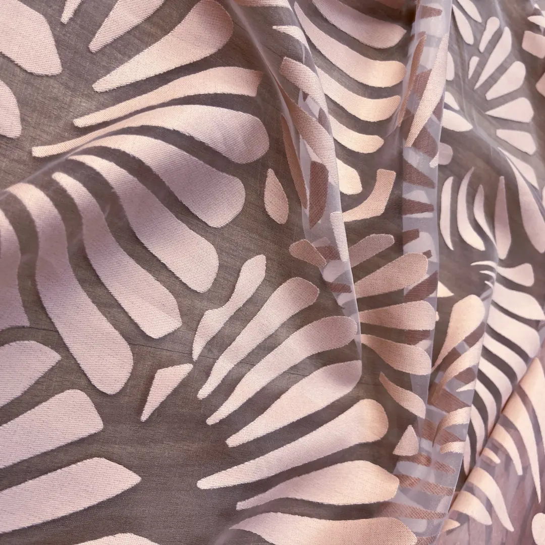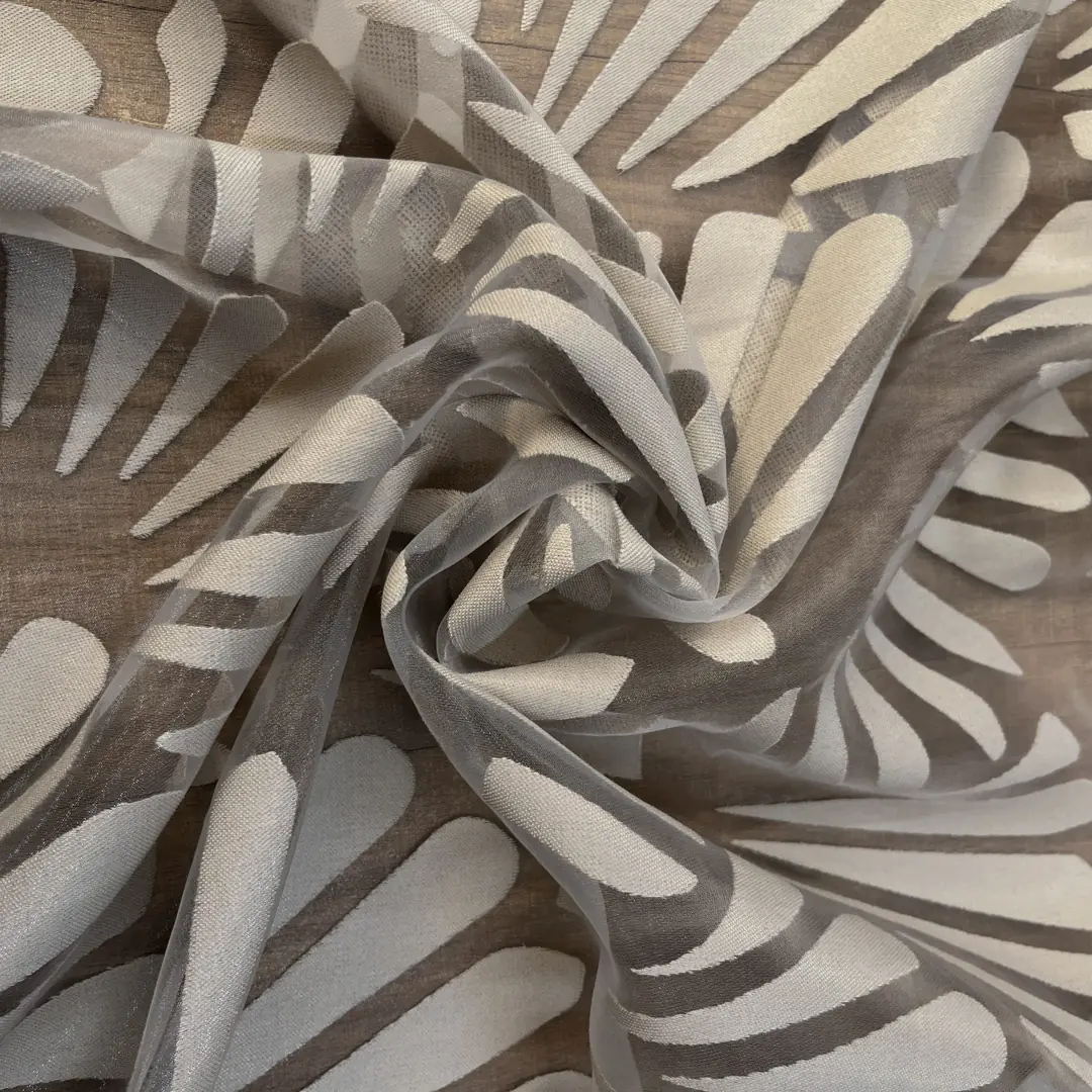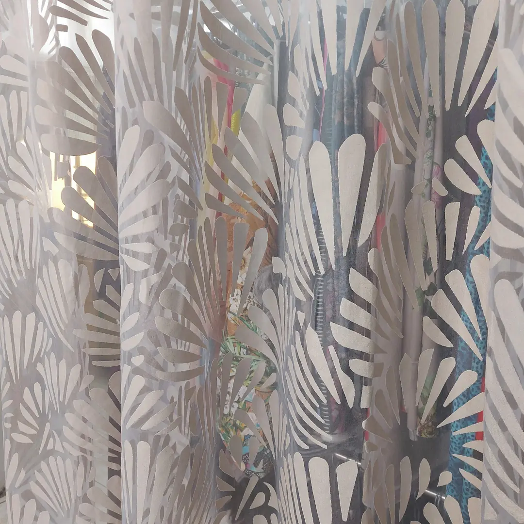 Raffinato tendaggio in devorè realizzato con una miscela di poliestere e viscosa