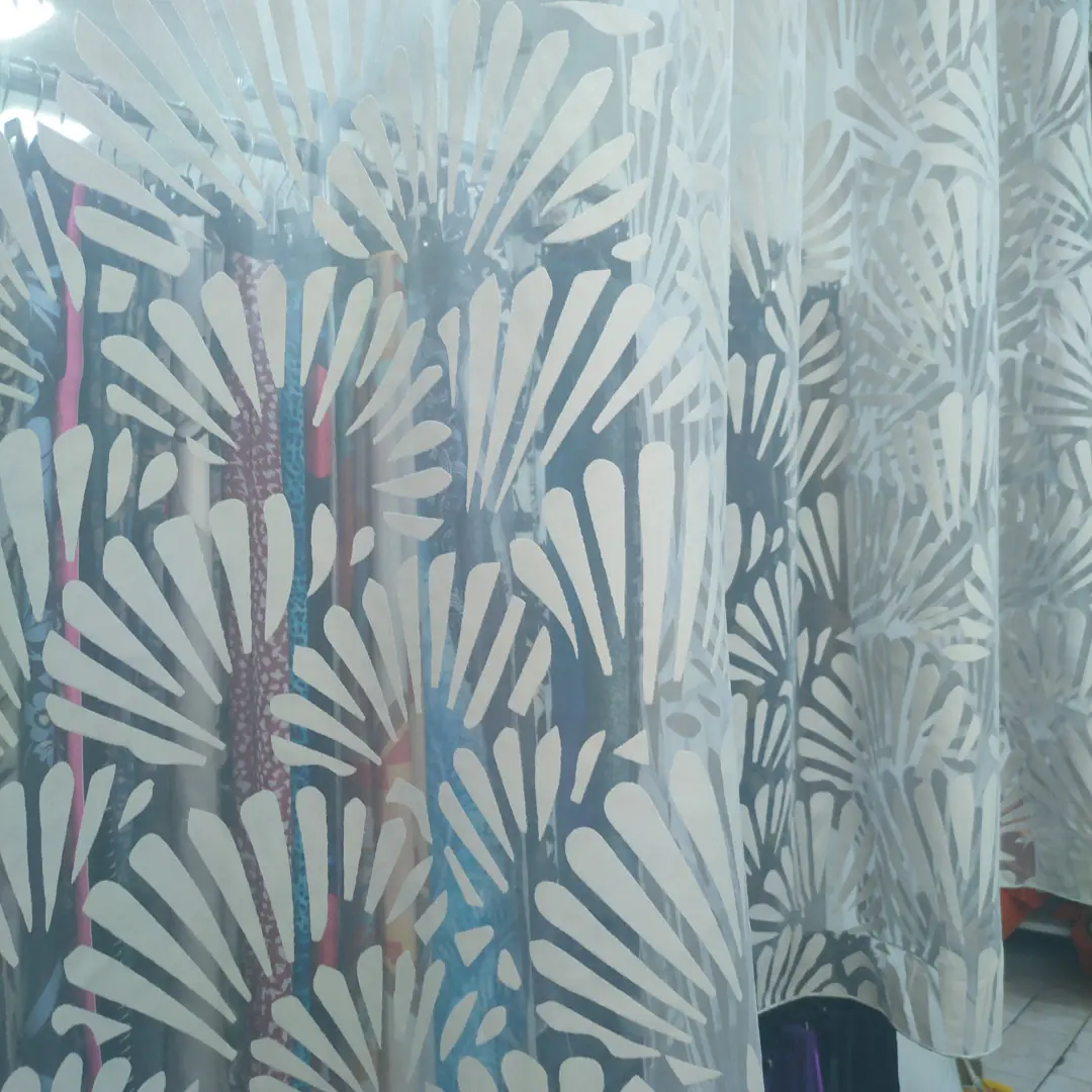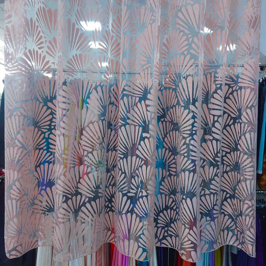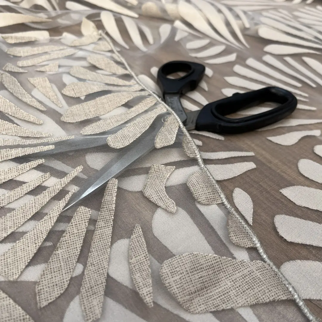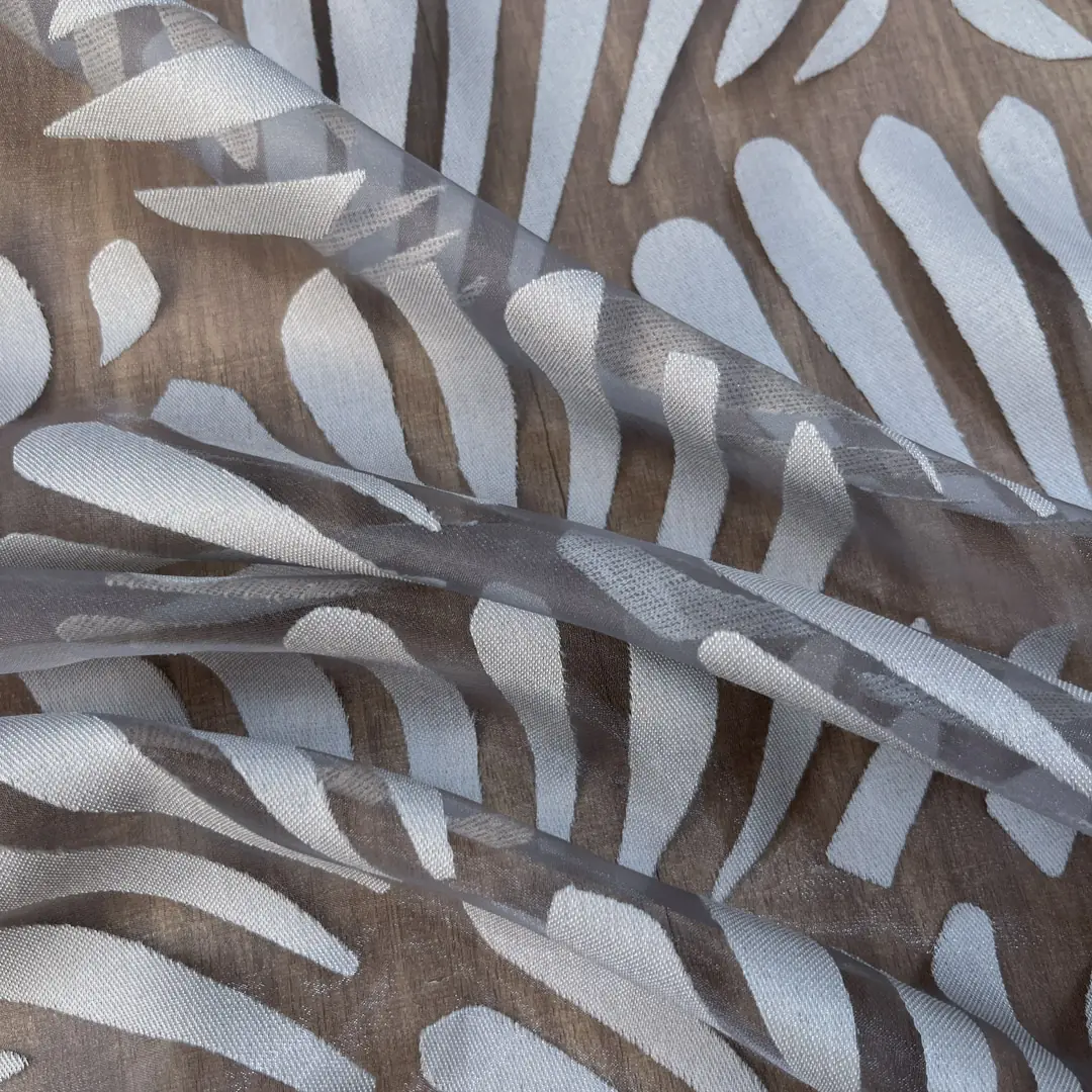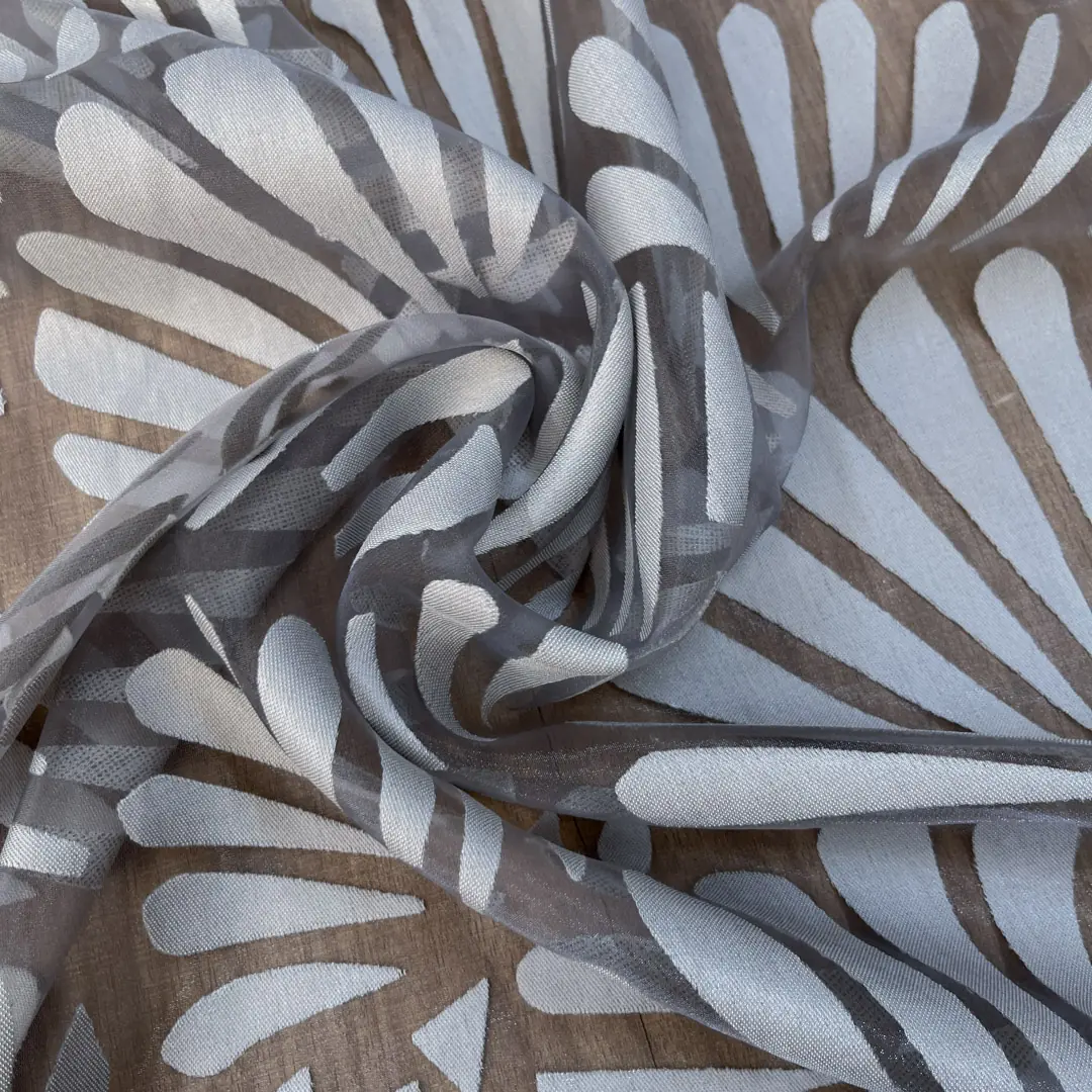 Raffinato tendaggio in devorè realizzato con una miscela di poliestere e viscosa