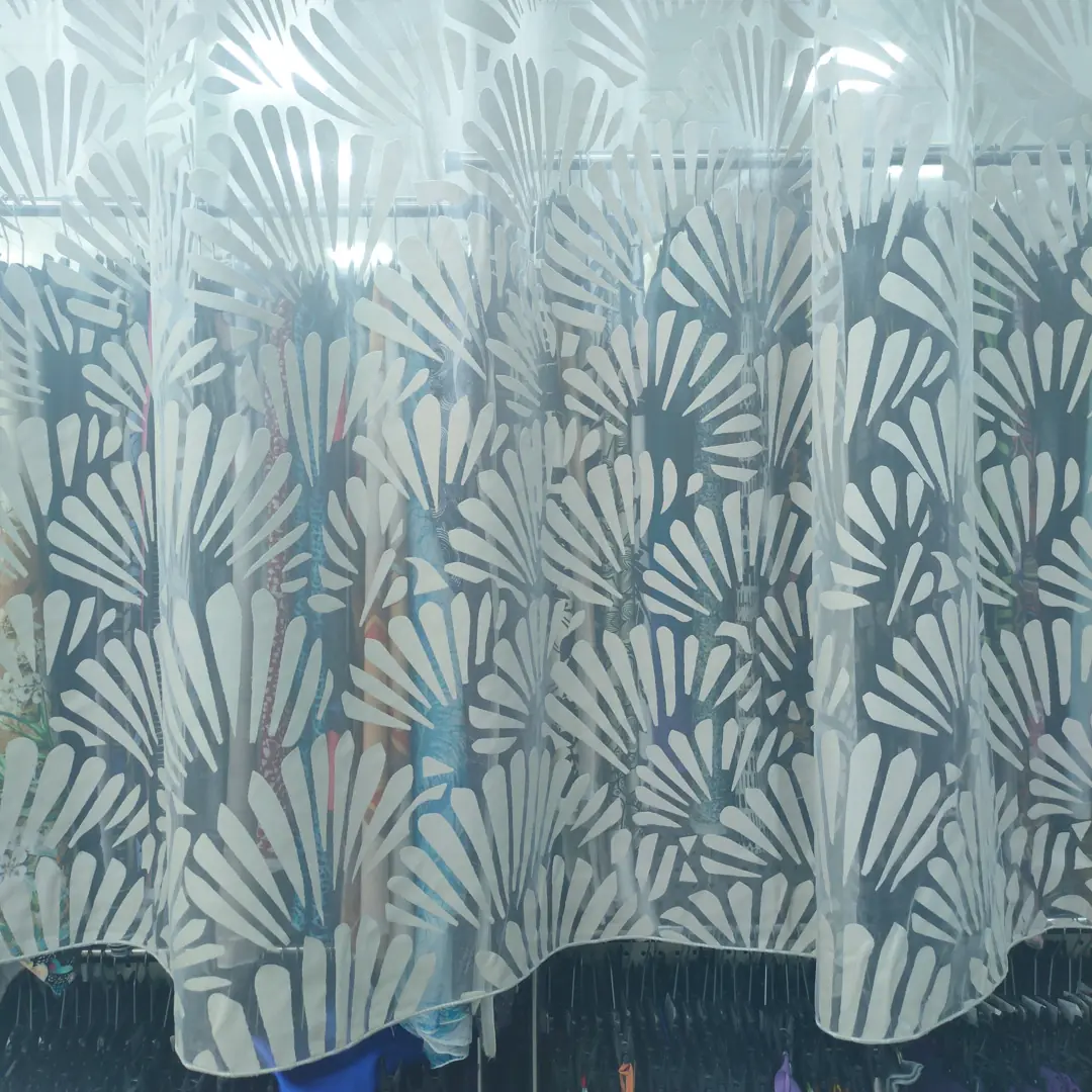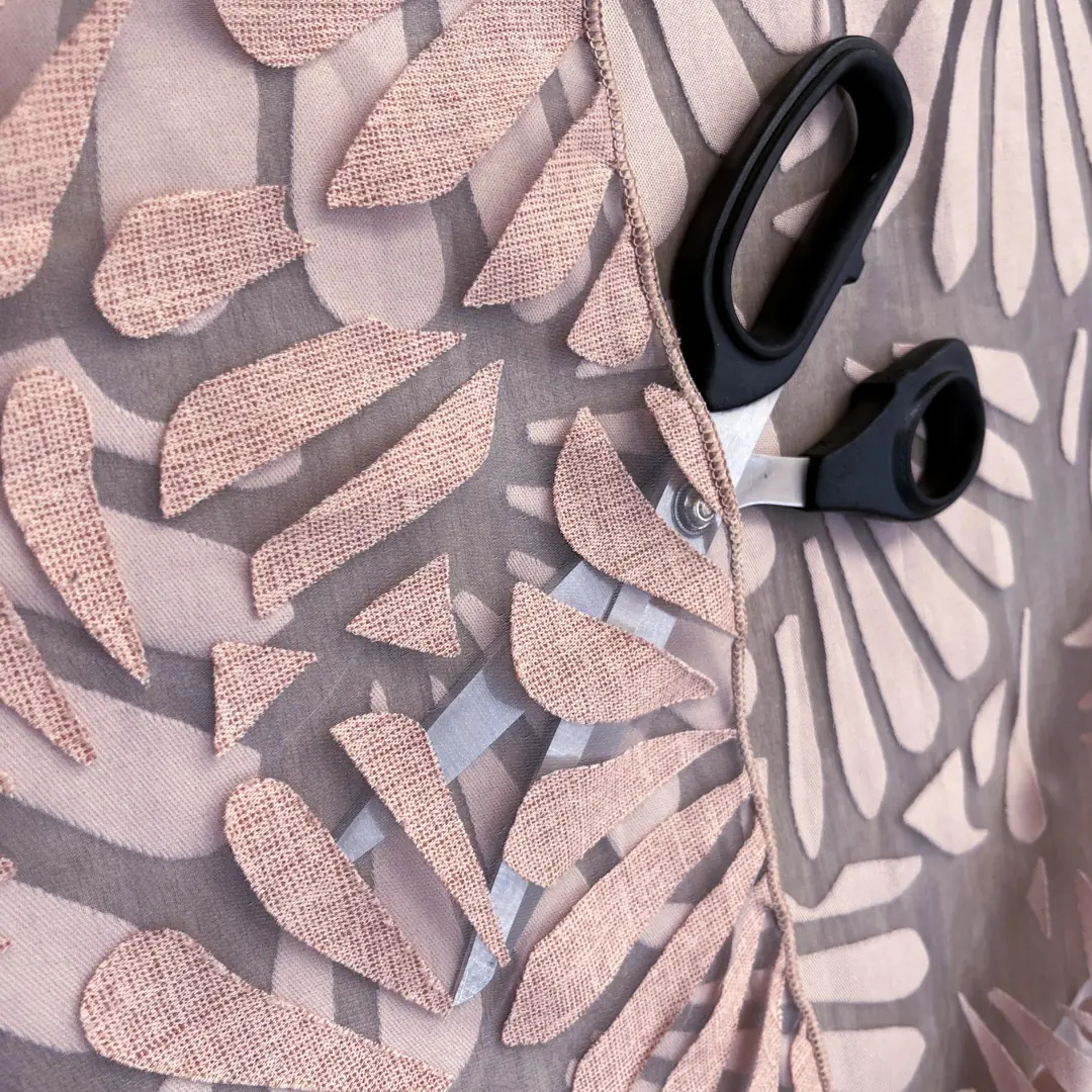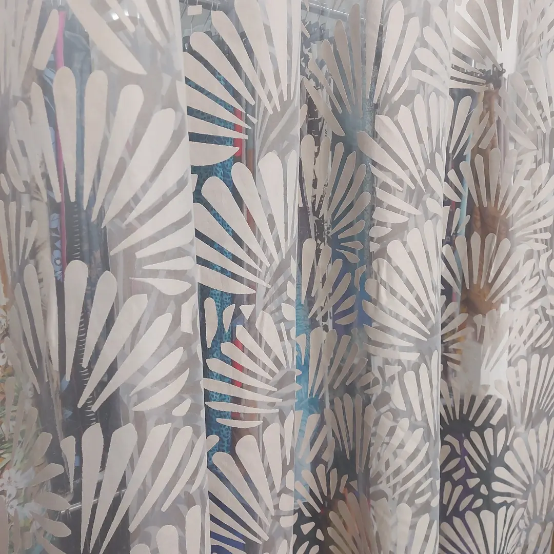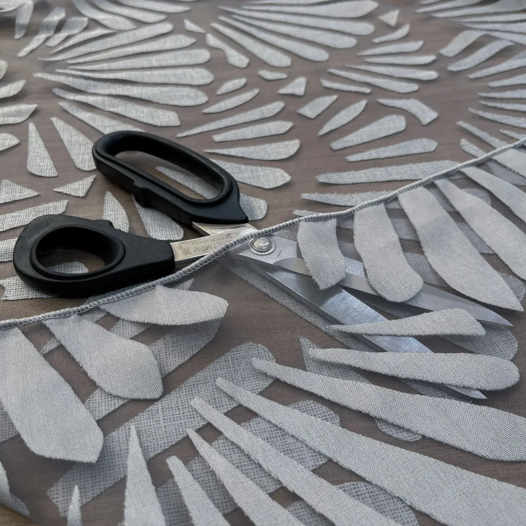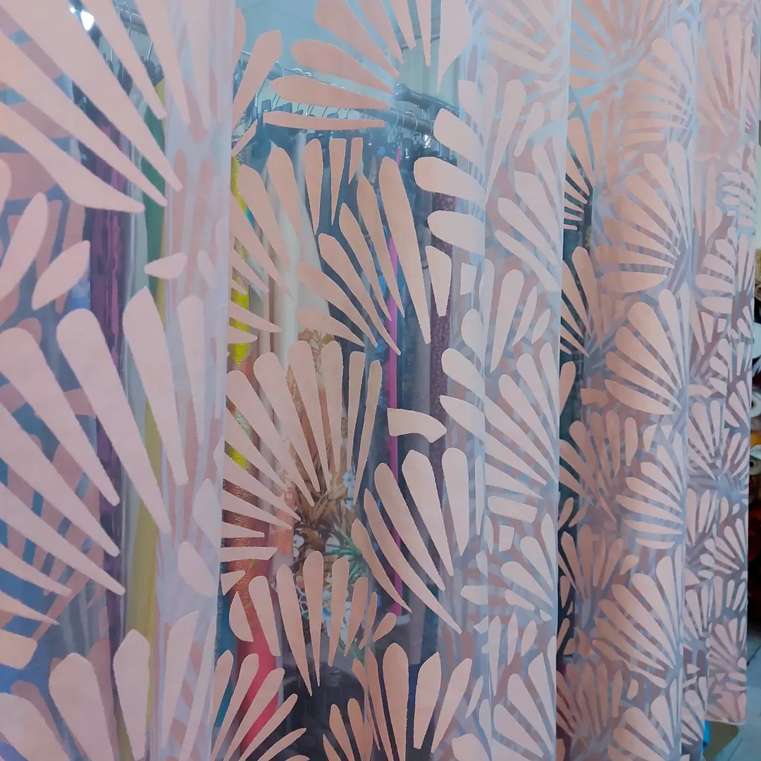 Raffinato tendaggio in devorè realizzato con una miscela di poliestere e viscosa