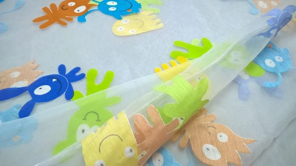 Tessuto per tendaggi in organza da bimbo/a fantasia mostriciattoli