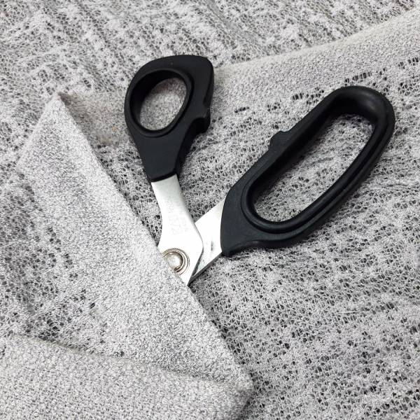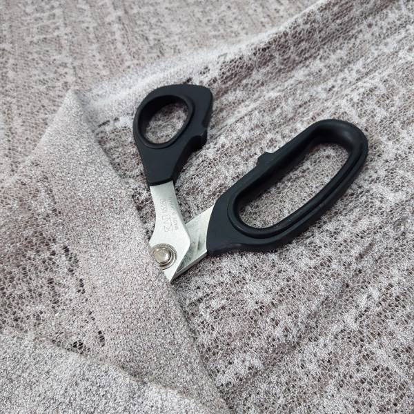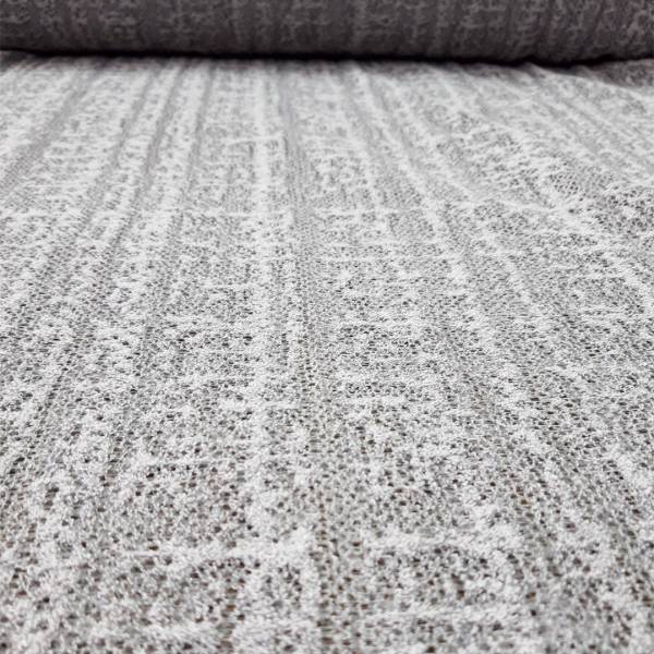 Il design si distingue per la sua particolare lavorazione a rete, un motivo contemporaneo e ricercato che aggiunge movimento e personalità al tessuto.
