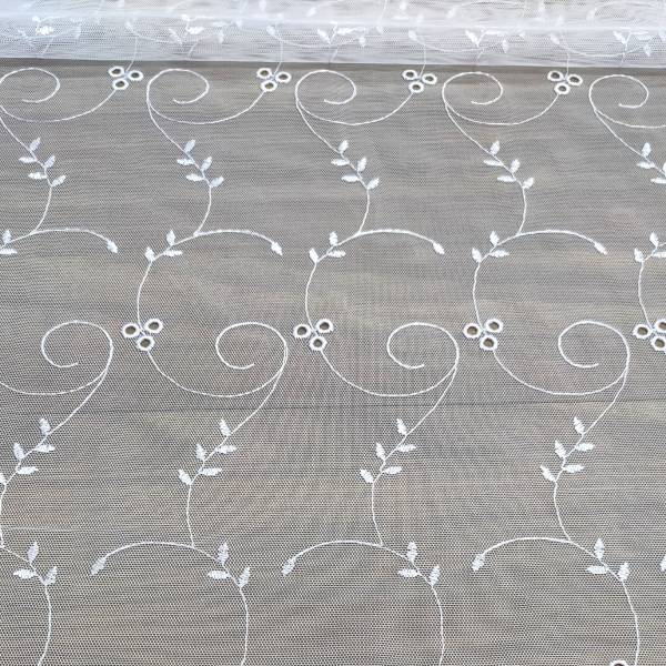 Tessuto per tende in tulle bianco ricamato con squisiti ghirigori