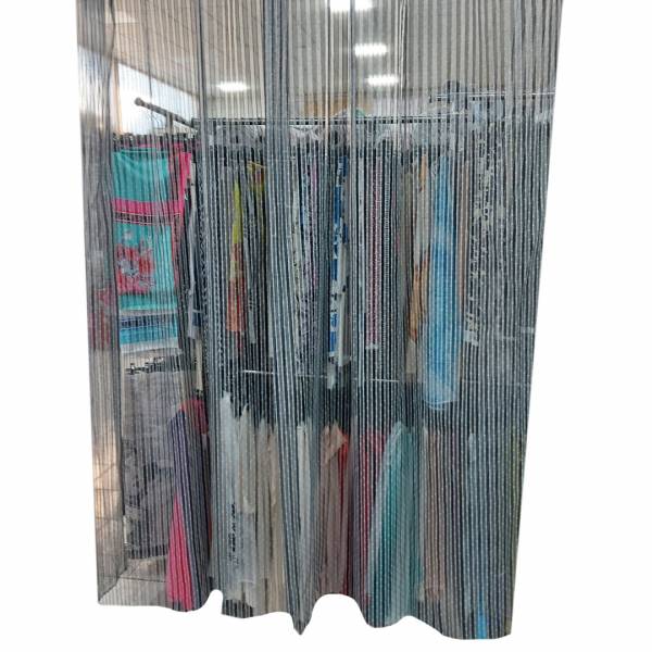 Le righe azzurre, sottili e ben definite, aggiungono un tocco di colore fresco e sereno alla stoffa, senza risultare troppo invadenti, mantenendo una discrezione che si adatta perfettamente a stili d’arredo moderni o più classici. Questo tipo di tenda non solo arricchisce visivamente lo spazio, ma contribuisce anche a regolare la luminosità naturale, offrendo una protezione delicata contro i raggi solari diretti pur mantenendo una sensazione di apertura e leggerezza nell’ambiente.