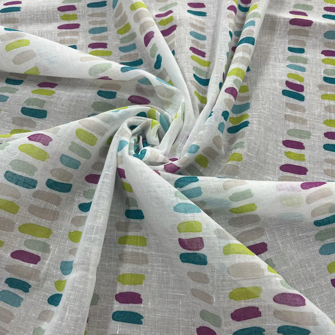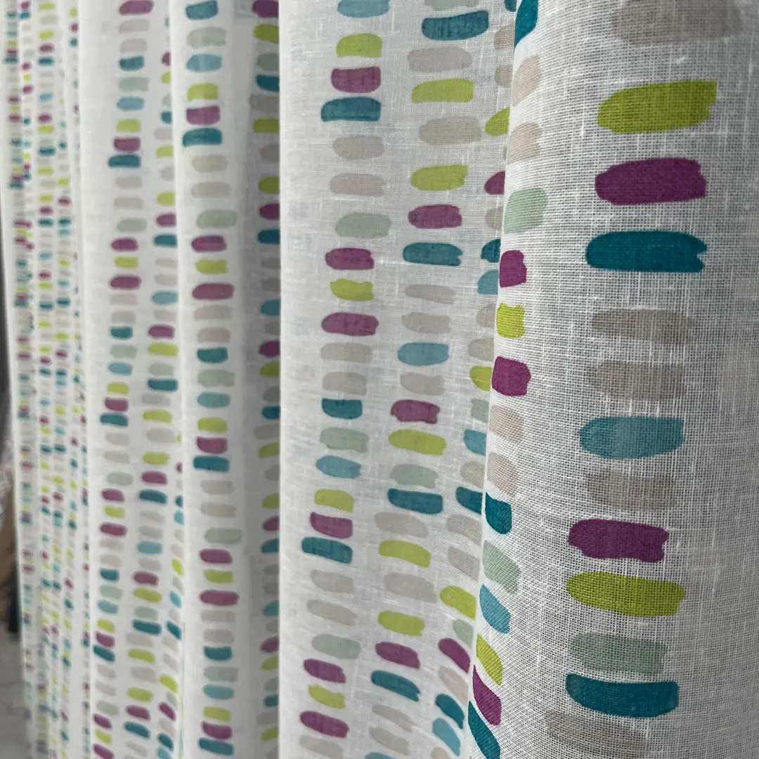La grammatura media-leggera del materiale e la sua natura antipiega lo rendono ideale per filtrare dolcemente la luce solare, creando giochi di ombre colorate negli interni senza richiedere manutenzioni complesse.