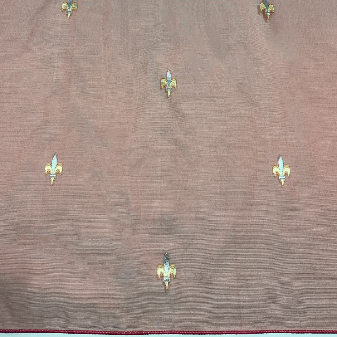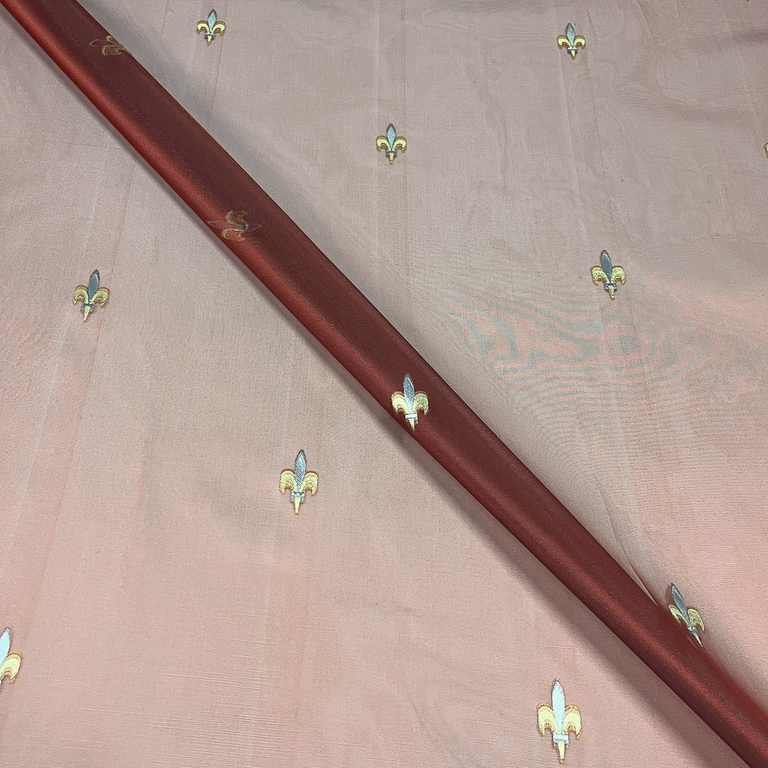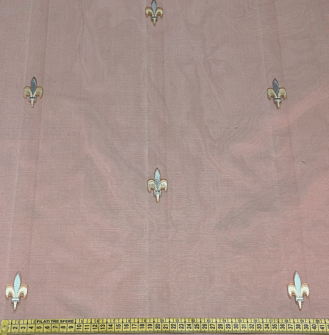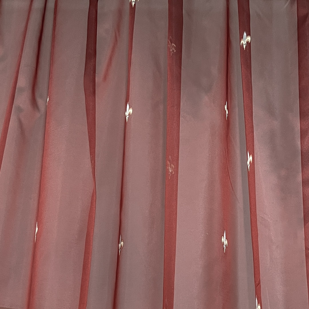 Il colore rosso rubino aggiunge alla stoffa una nota di regalità e calore, mentre i delicati gigli in lamè dorati e argento aggiungono un tocco di glamour e sofisticazione. I dettagli luminosi dei gigli brillano delicatamente al cambiare della luce, creando un effetto visivo incantevole e invitante.