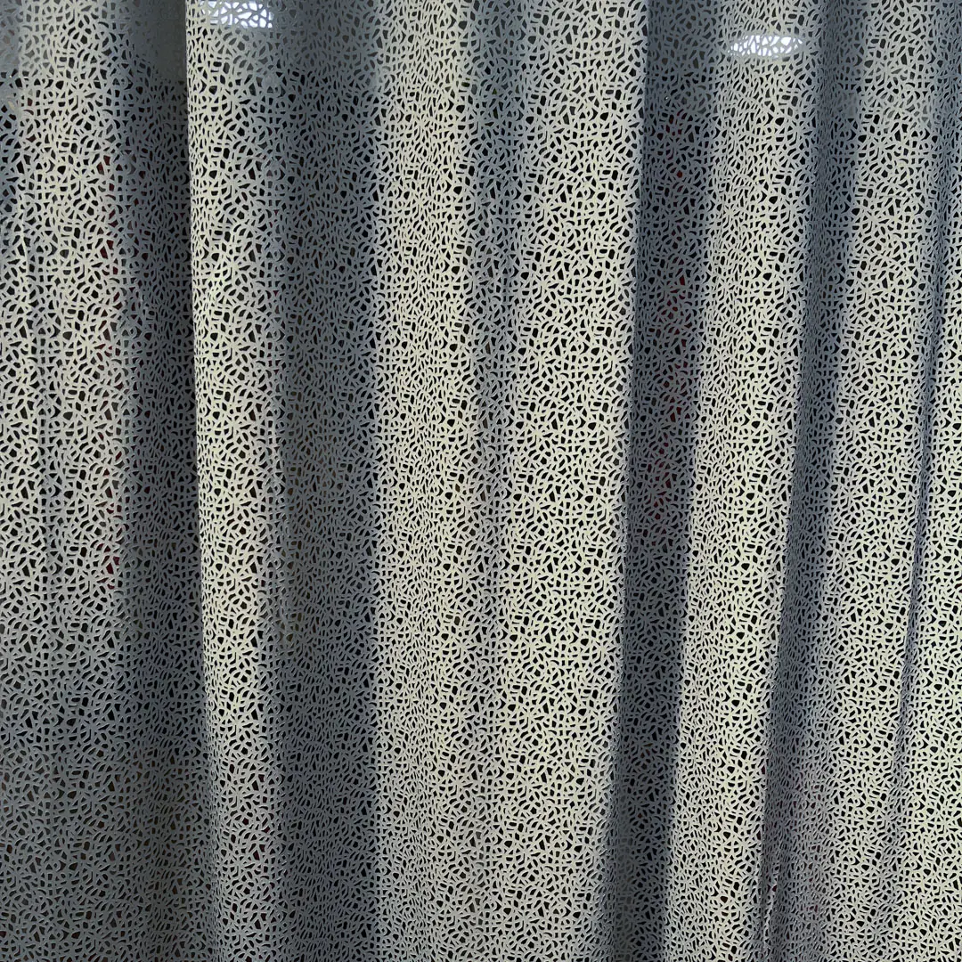 Caratterizzato da una media/bassa coprenza, il devoré crea un raffinato gioco di trasparenze, permettendo alla luce di attraversare il tessuto e proiettare nell’ambiente eleganti riflessi e ombreggiature che riproducono il disegno astratto con un effetto visivo esclusivo.