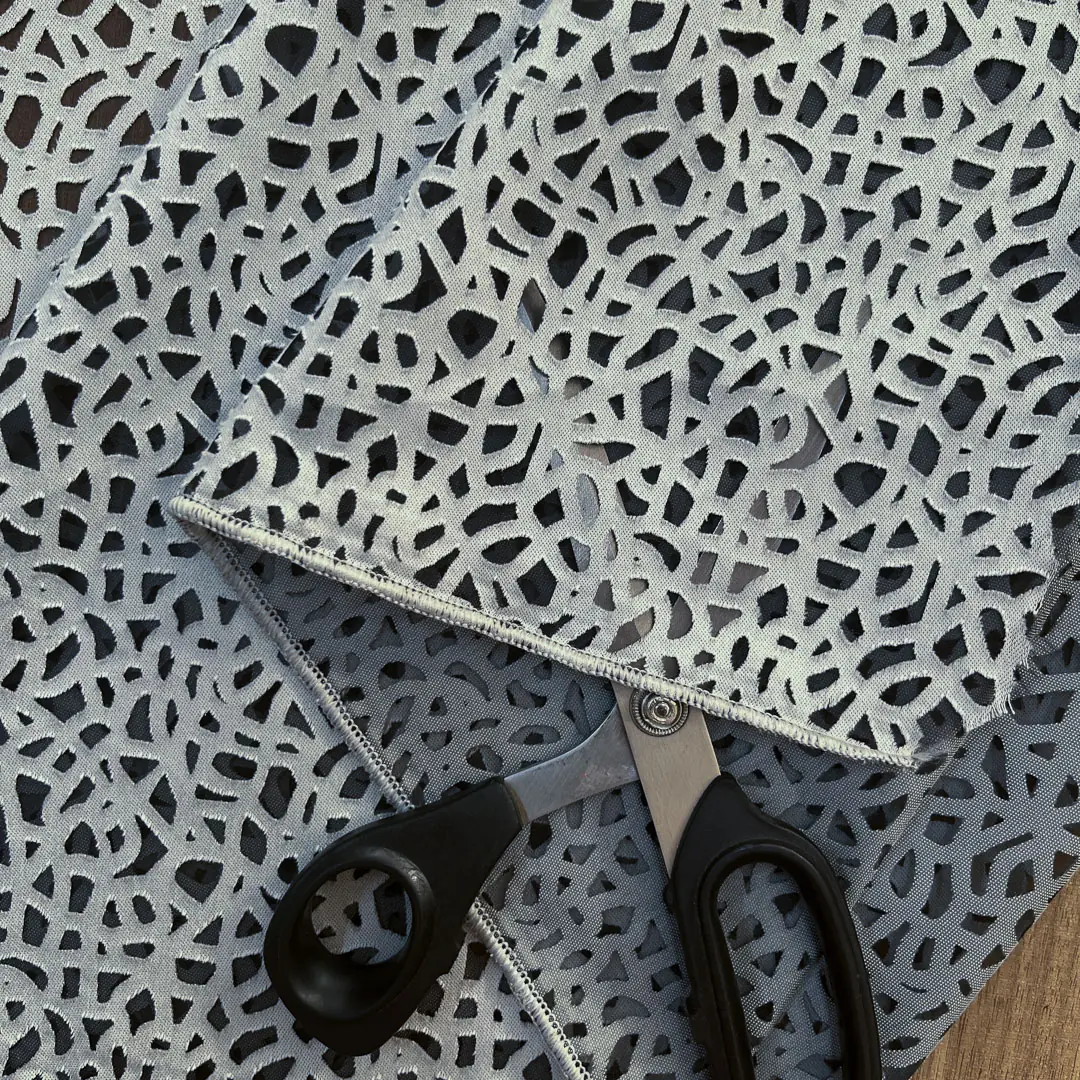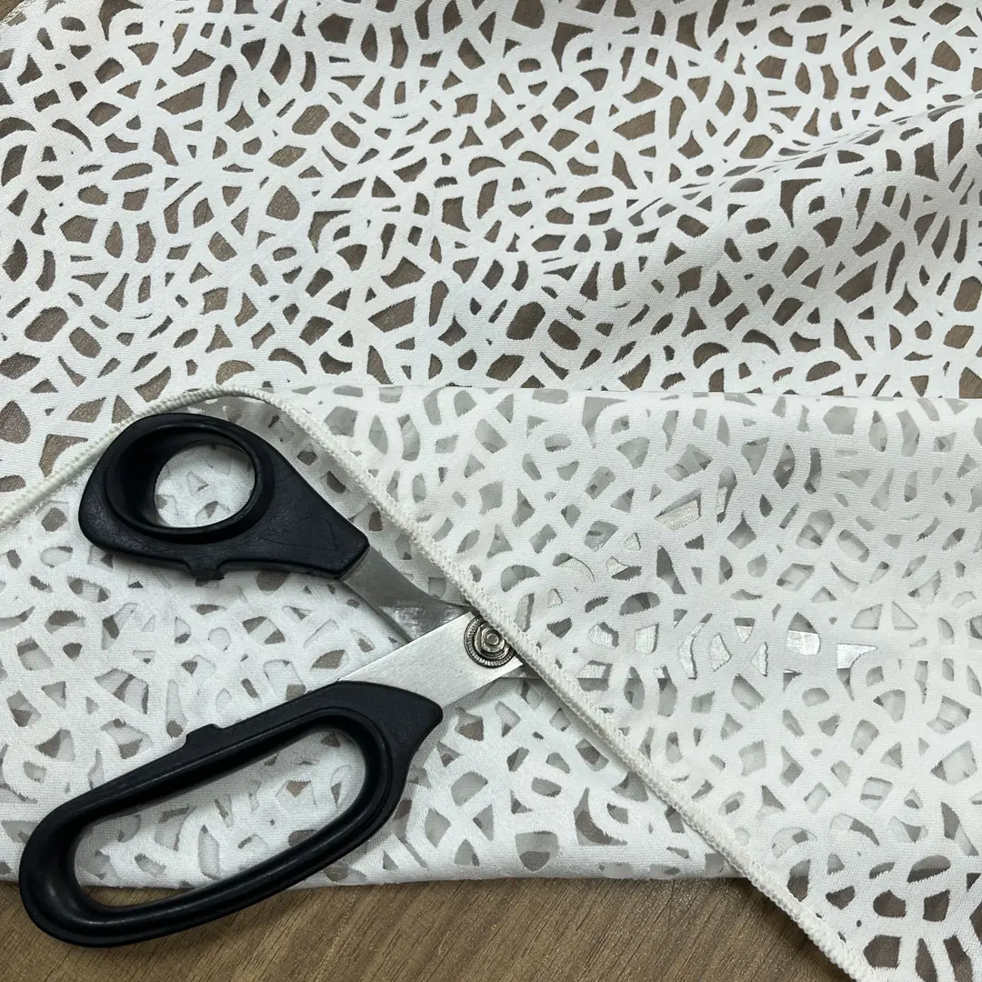 Tessuto per tendaggi in devorè fantasia astratta