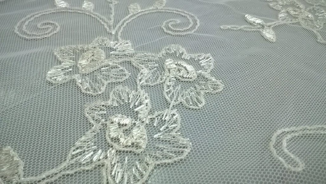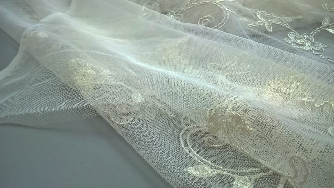 Tessuto per tendaggi in tulle ricamato floreale – avorio