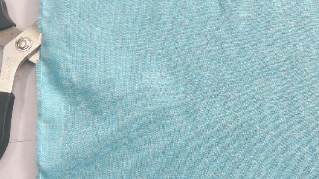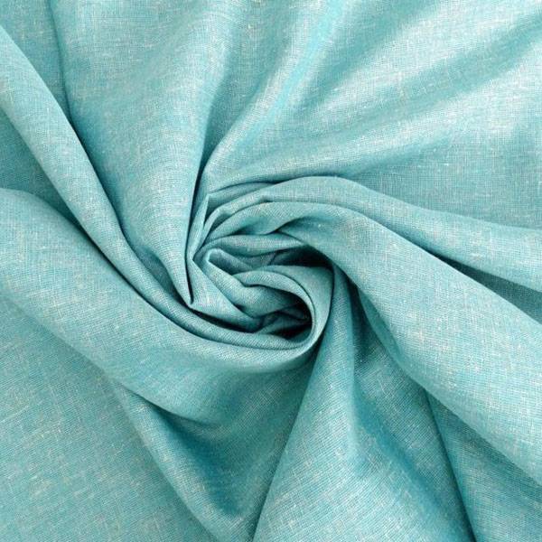 Tessuto turchese chiaro di alta qualità dalla tramatura effetto lino larga e con leggero effetto melange.