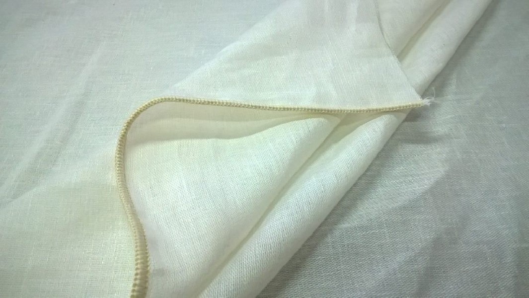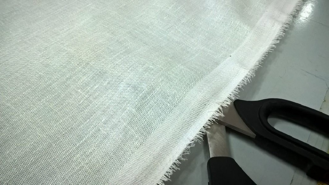 Tessuto per tendaggio in Puro Lino di colore avorio leggermente trasparente.
