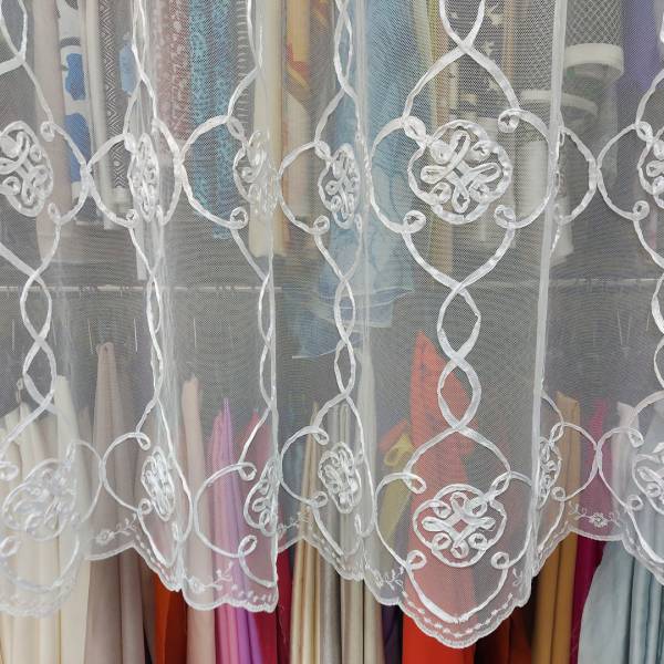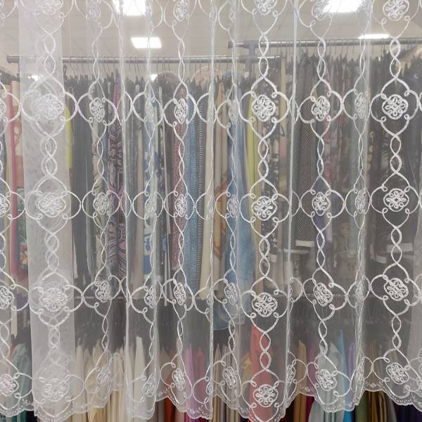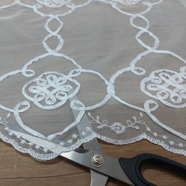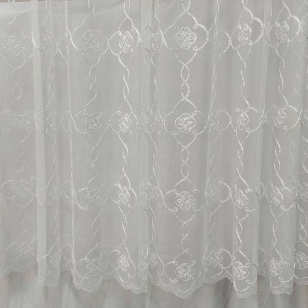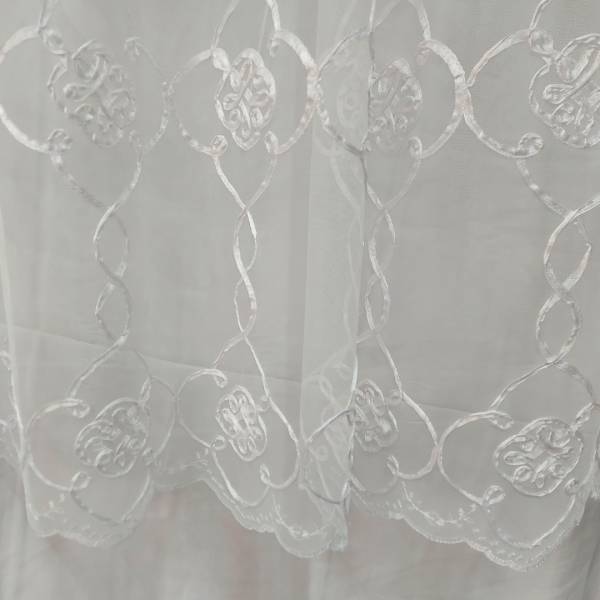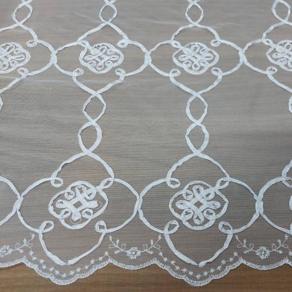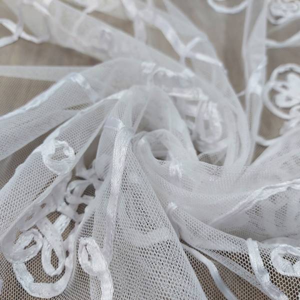 Tendaggio in tulle ricamato in bianco ottico