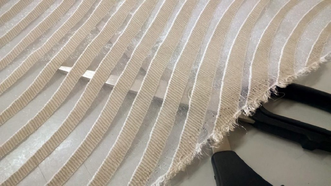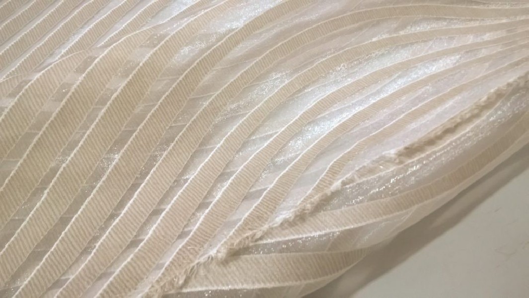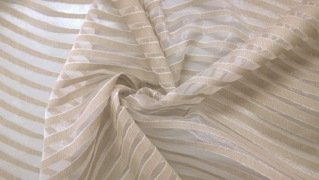 Tessuto per tende motivo righe ondulate – panna e bianco