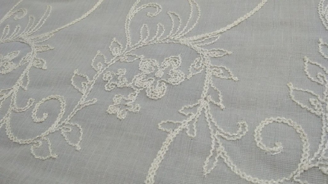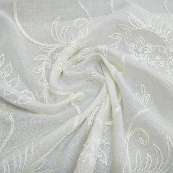 Tessuto per tende ricamato a fiori – bianco