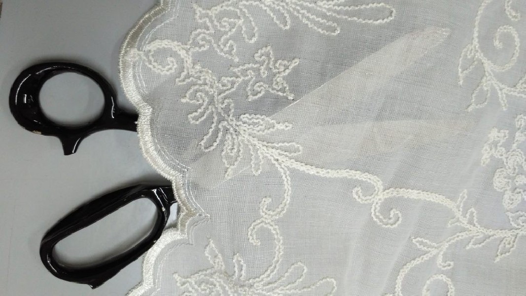 Tessuto per tende in poliestere ricamato.