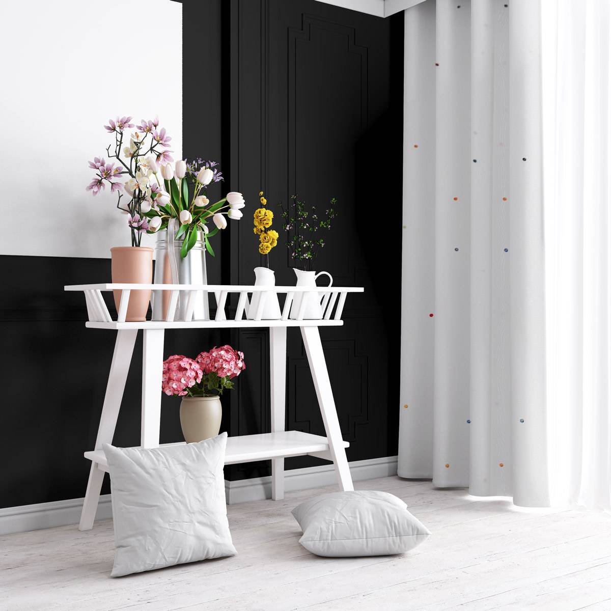 Moderno ed elegante, questo tendaggio è ideale per confezionare tende e tendini a vetro per saloni, cucine o camerette per bambine.