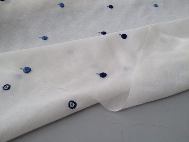 – Variante 2: Sfondo bianco con pois azzurro e blu.