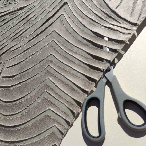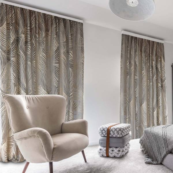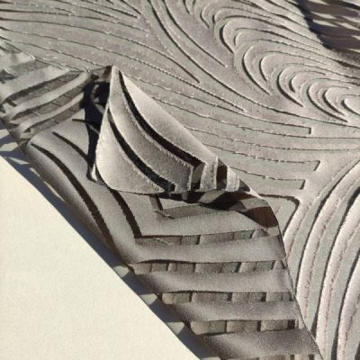 In più il disegno è alternato da spazi trasparenti tramite l’utilizzo della lavorazione devorè che permetterà alla luce di filtrare nella stanza e creare giochi di ombre.