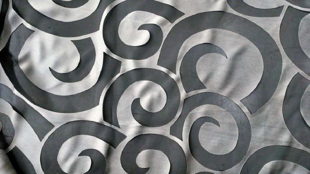 Eleganti tessuti per tende semitrasparenti, decorati con una fantasia a spirali
