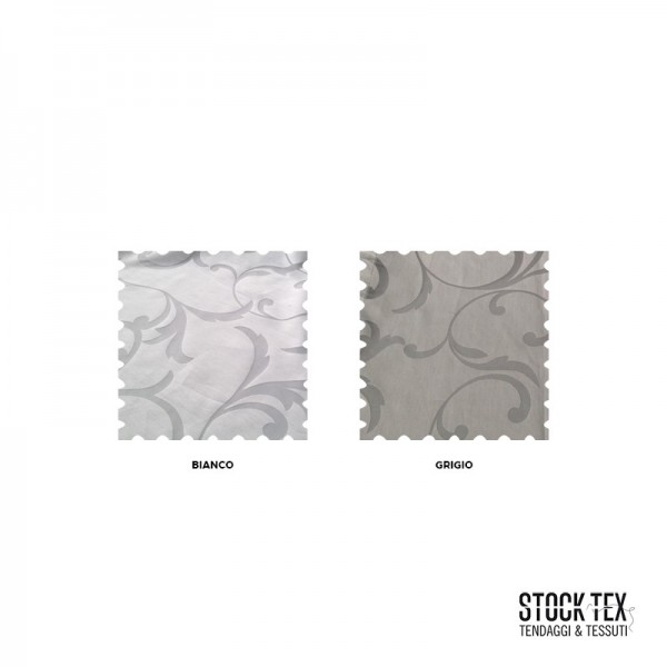 Tessuto per tende a fantasia floreale damascata trasparente su sfondo semitrasparente