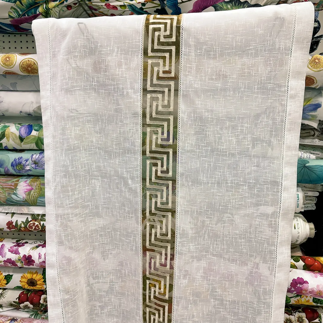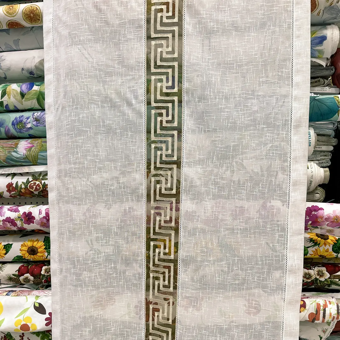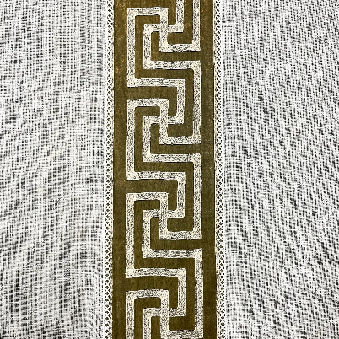 Tendina Greca Classica Meandro Ricamato 90cm Effetto Lino