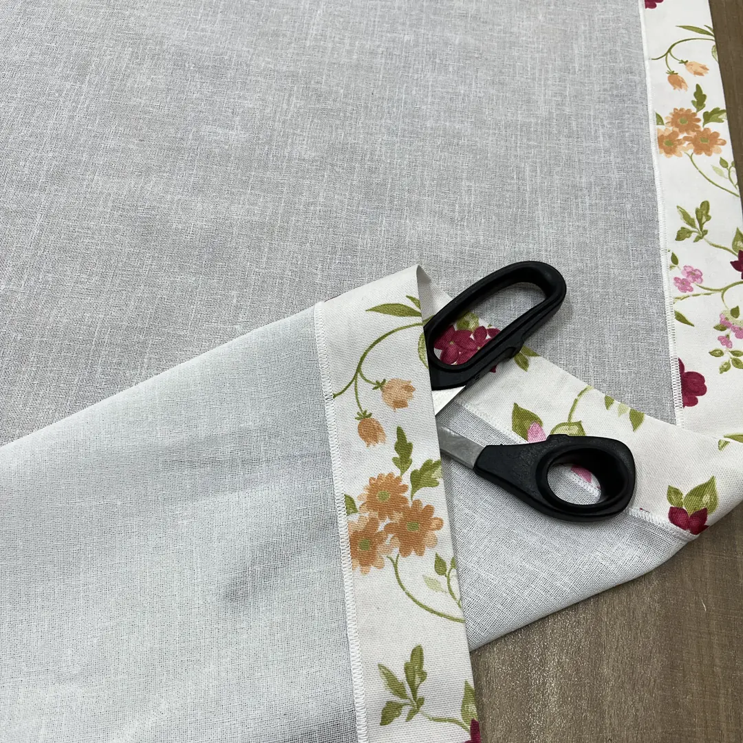 Tendina a vetro in tessuto effetto lino base bianca con raffinate bordure floreali multicolore, perfetta per donare un tocco romantico ed elegante alle finestre di cucina e soggiorno. Le fasce laterali sono decorate con delicati fiori nei toni dell’arancio, rosa, bordeaux e verde oliva, che creano un contrasto vivace e armonioso con la base bianca luminosa.