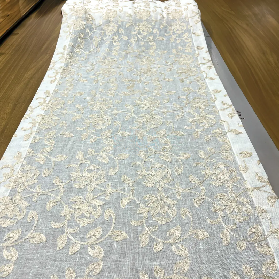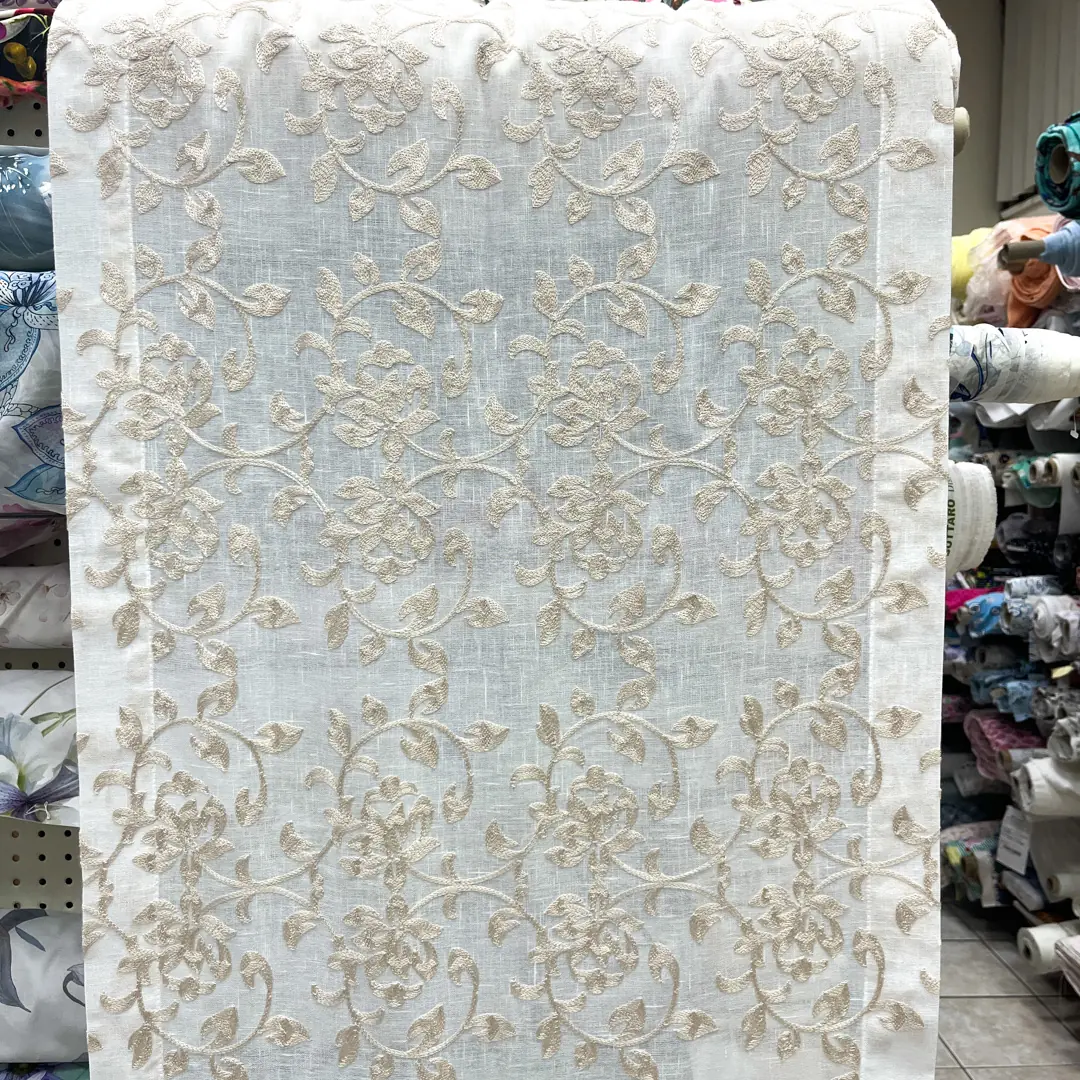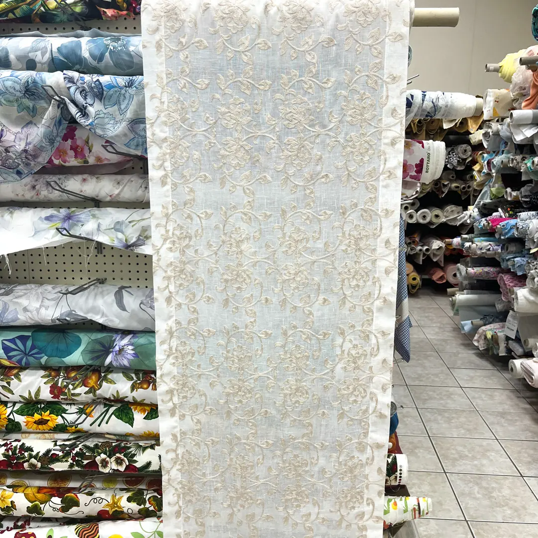 Tessuto per tende a vetro con fantasia floreale ricamata