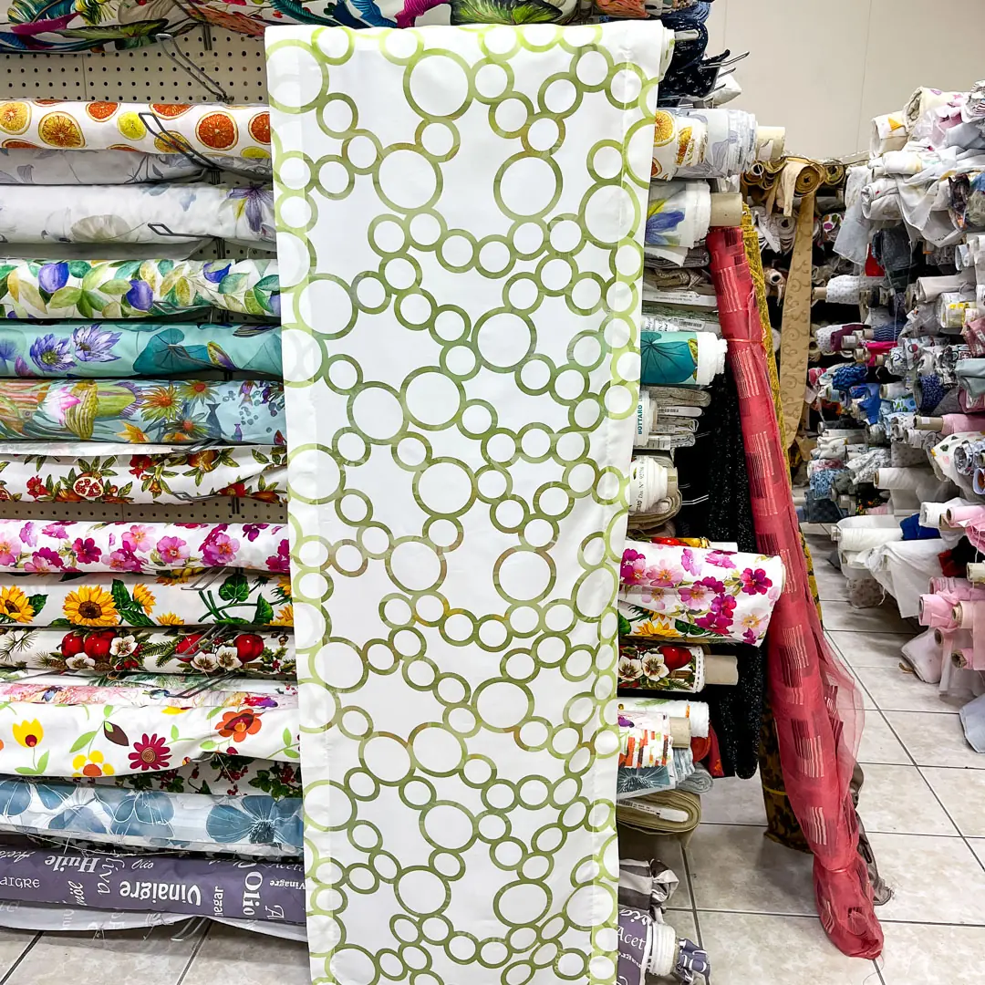 Base bianca con fantasia geometrica a cerchi verde salvia/verde oliva