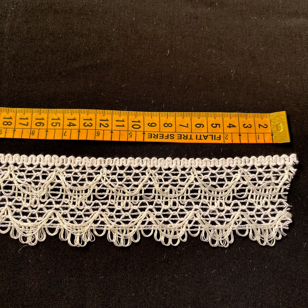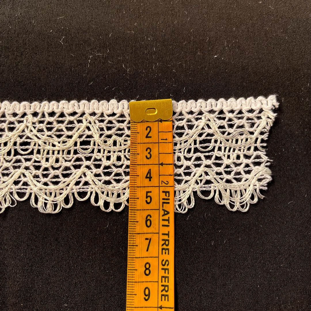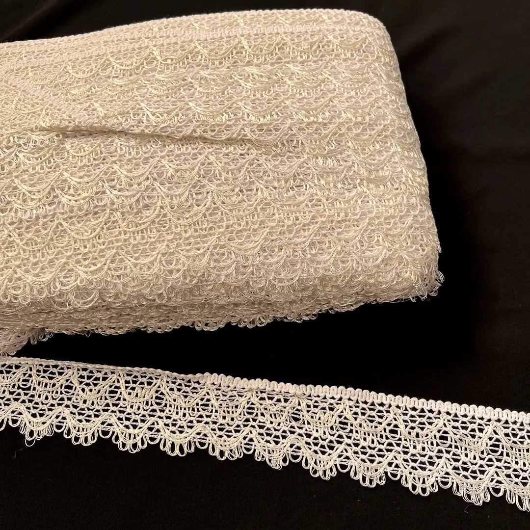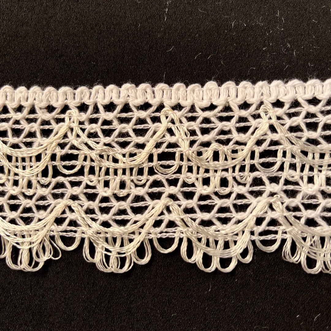 Merletto in cotone con lavorazione in pizzo di colore bianco naturale. Ideale per creazioni dal gusto romantico e vintage.
