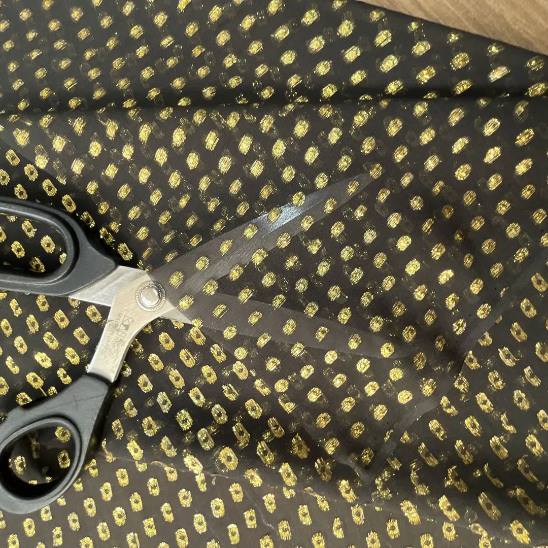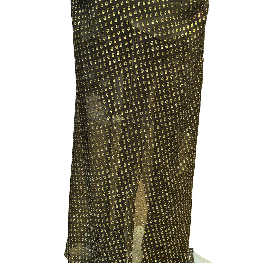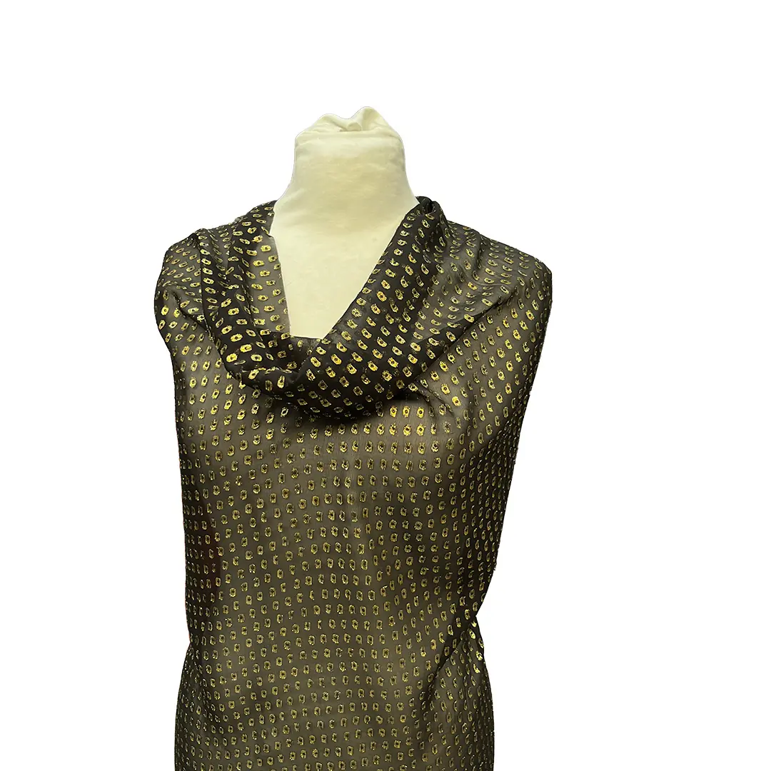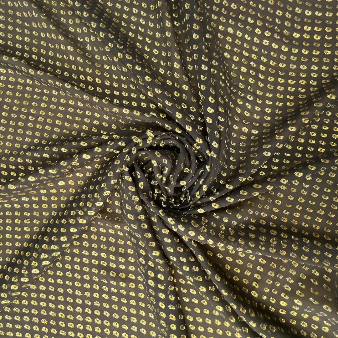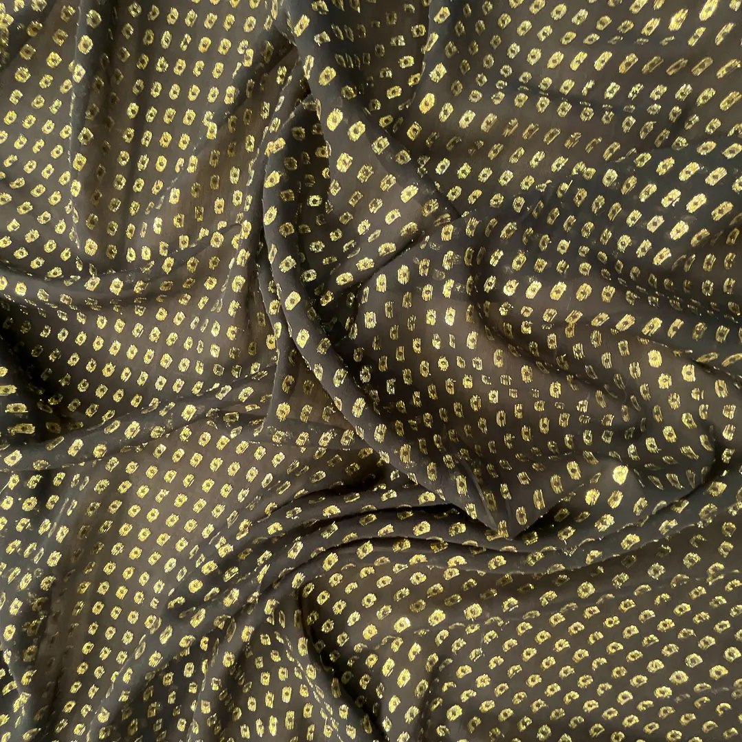 Tessuto in chiffon di seta alta moda Made in Italy con puntini dorati su sfondo nero