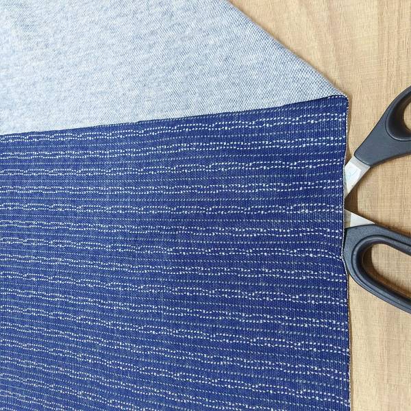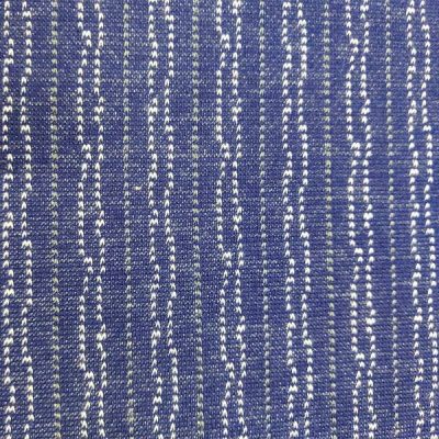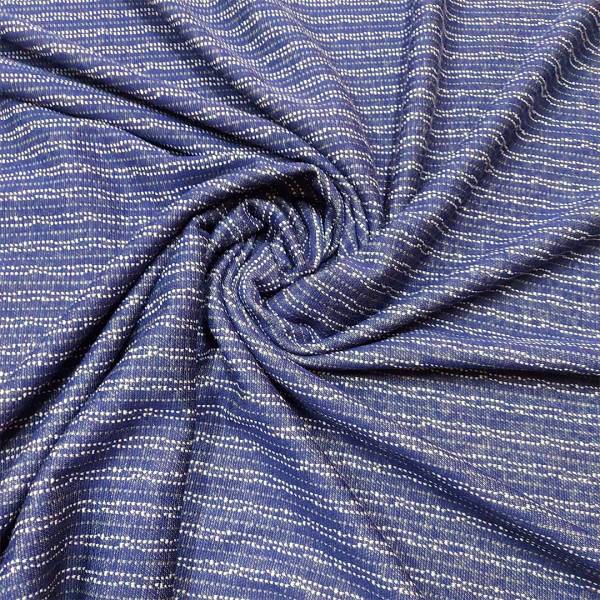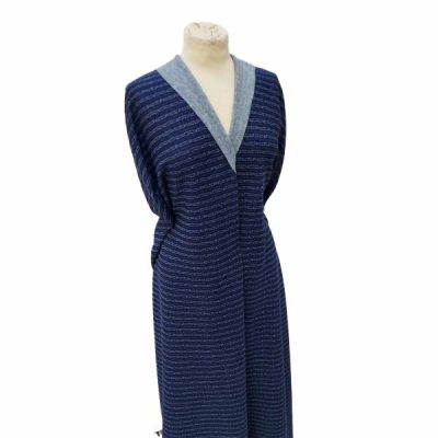 Tessuto in cotone elasticizzato blu con righe grigie