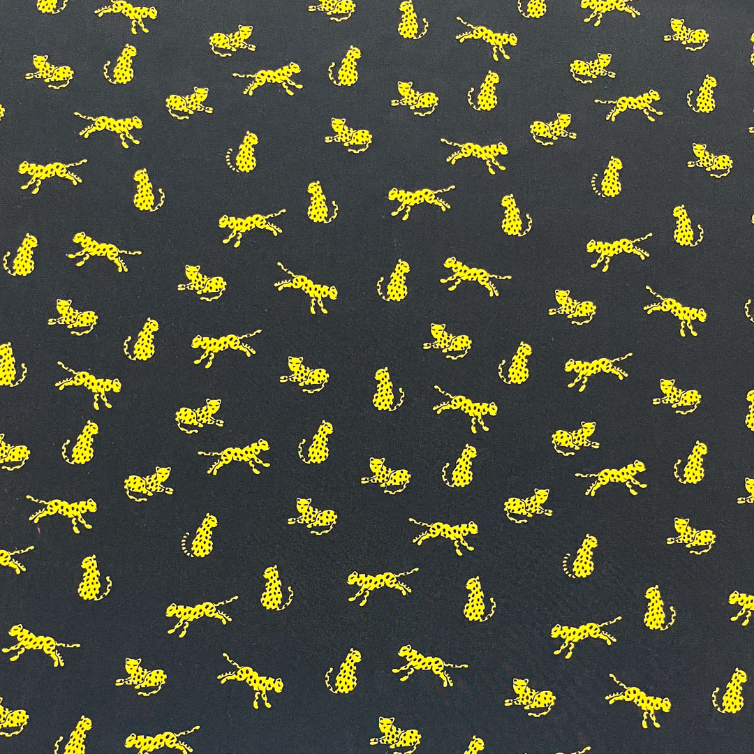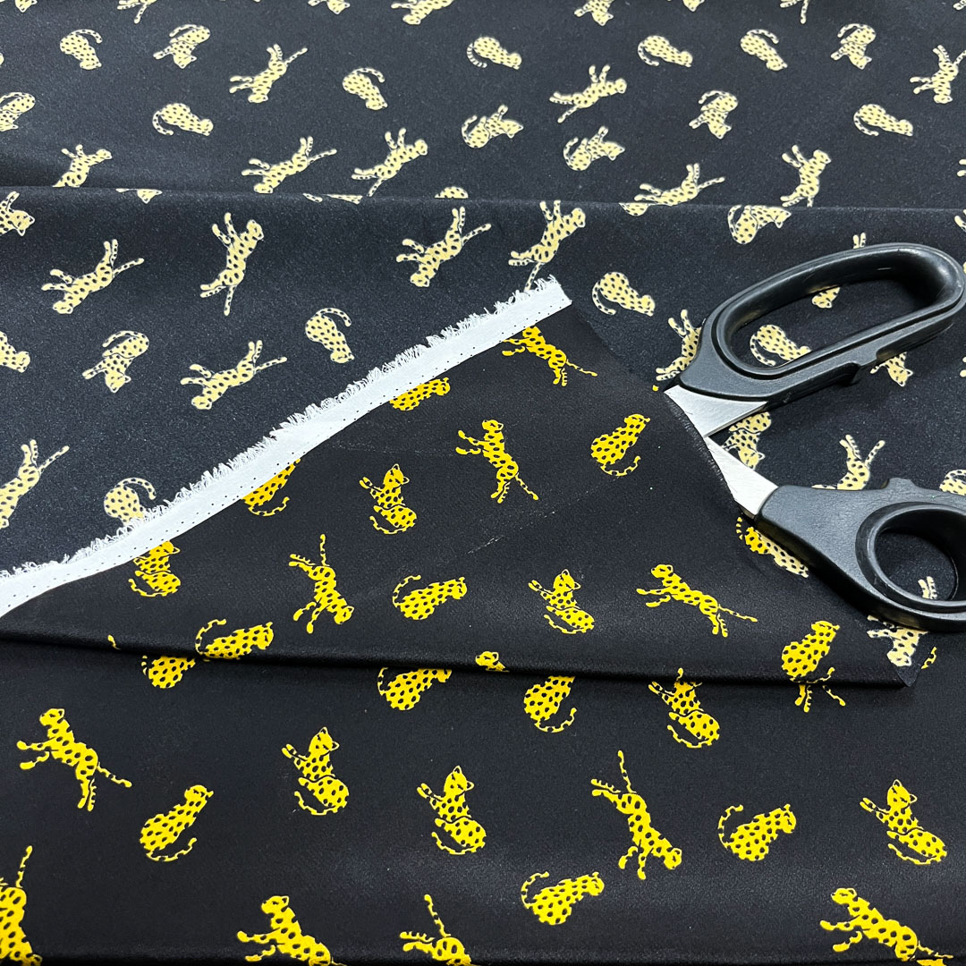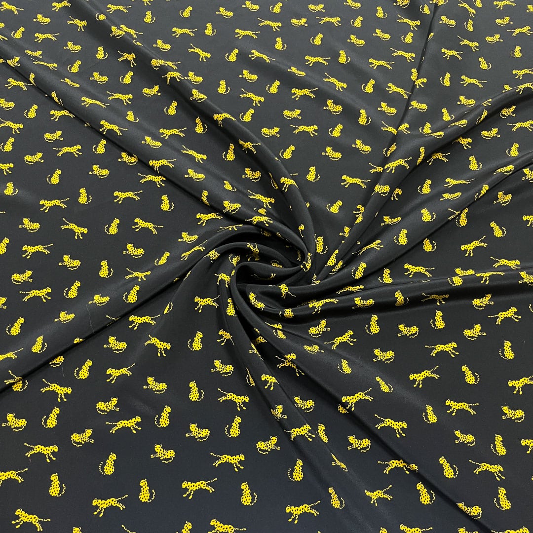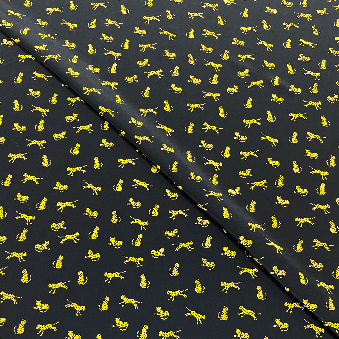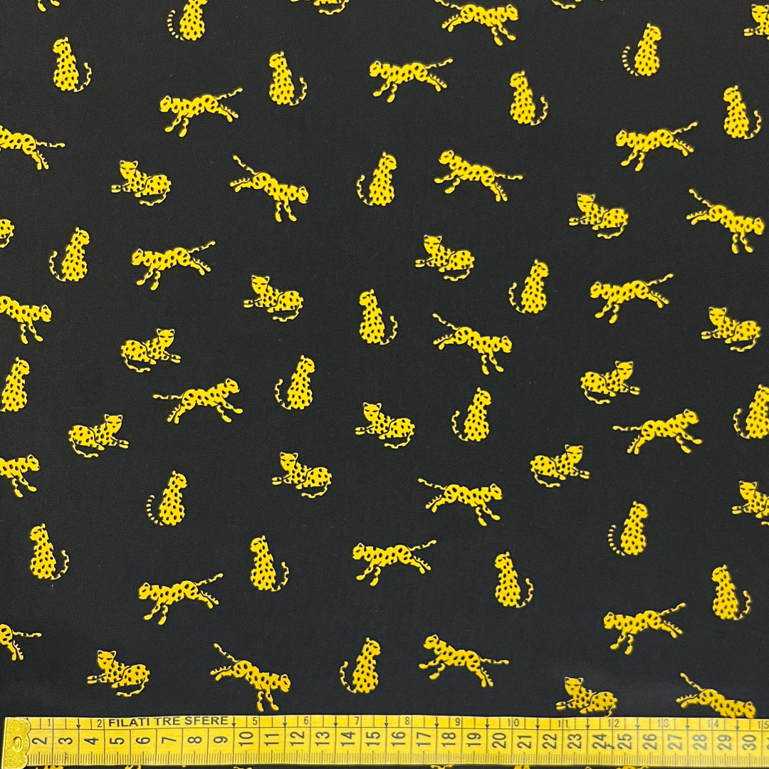 Crêpe di seta con audace fantasia a gheopardi