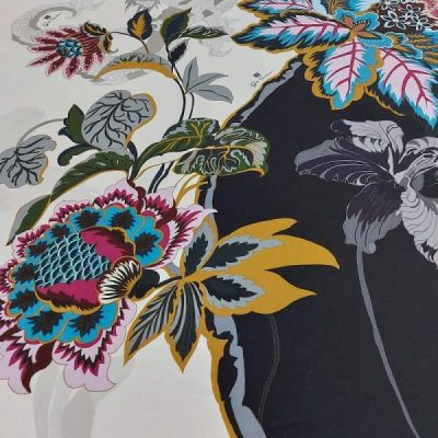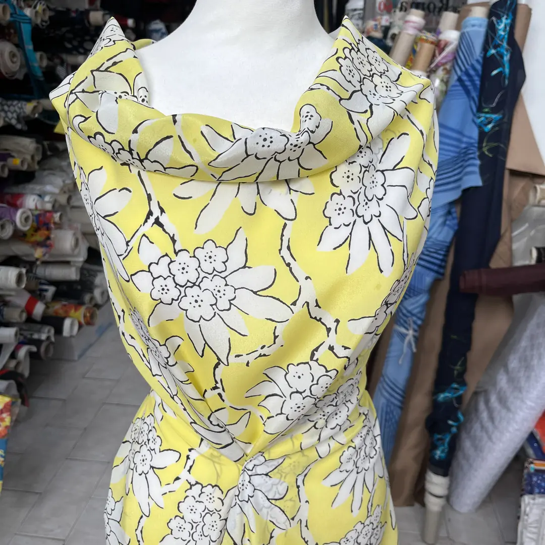 Tessuto in crêpe pura seta fiori estivi Made in Italy