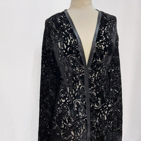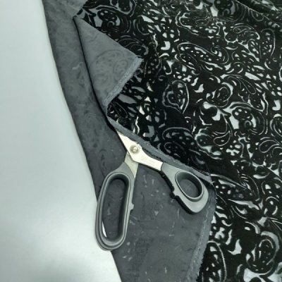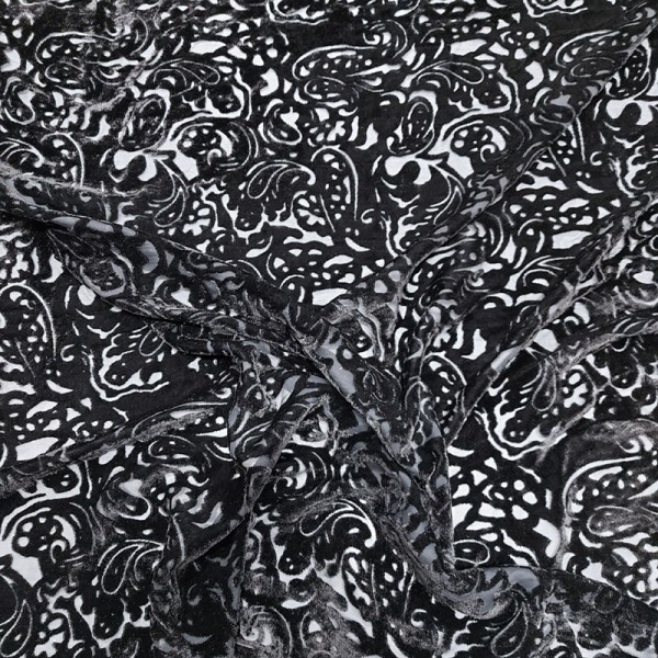 Stoffa raffinata con pattern effetto pizzo in devorè nero