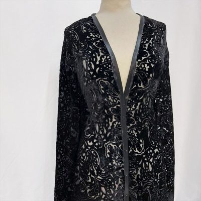 Stoffa semi trasparente composto da inserti di morbida ciniglia nera i quali creano eleganti disegni floreali astratti.