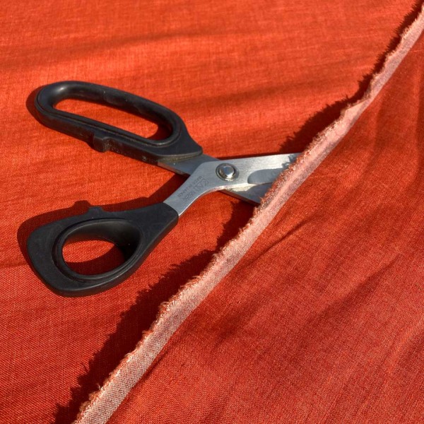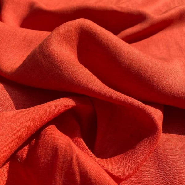 Tessuto per abiti in puro lino, colore arancione fiammato altezza 155 cm